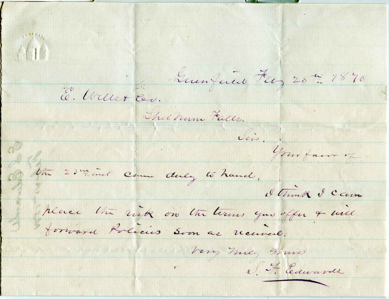 letter; Edwards, E.S. - Greenfield MA