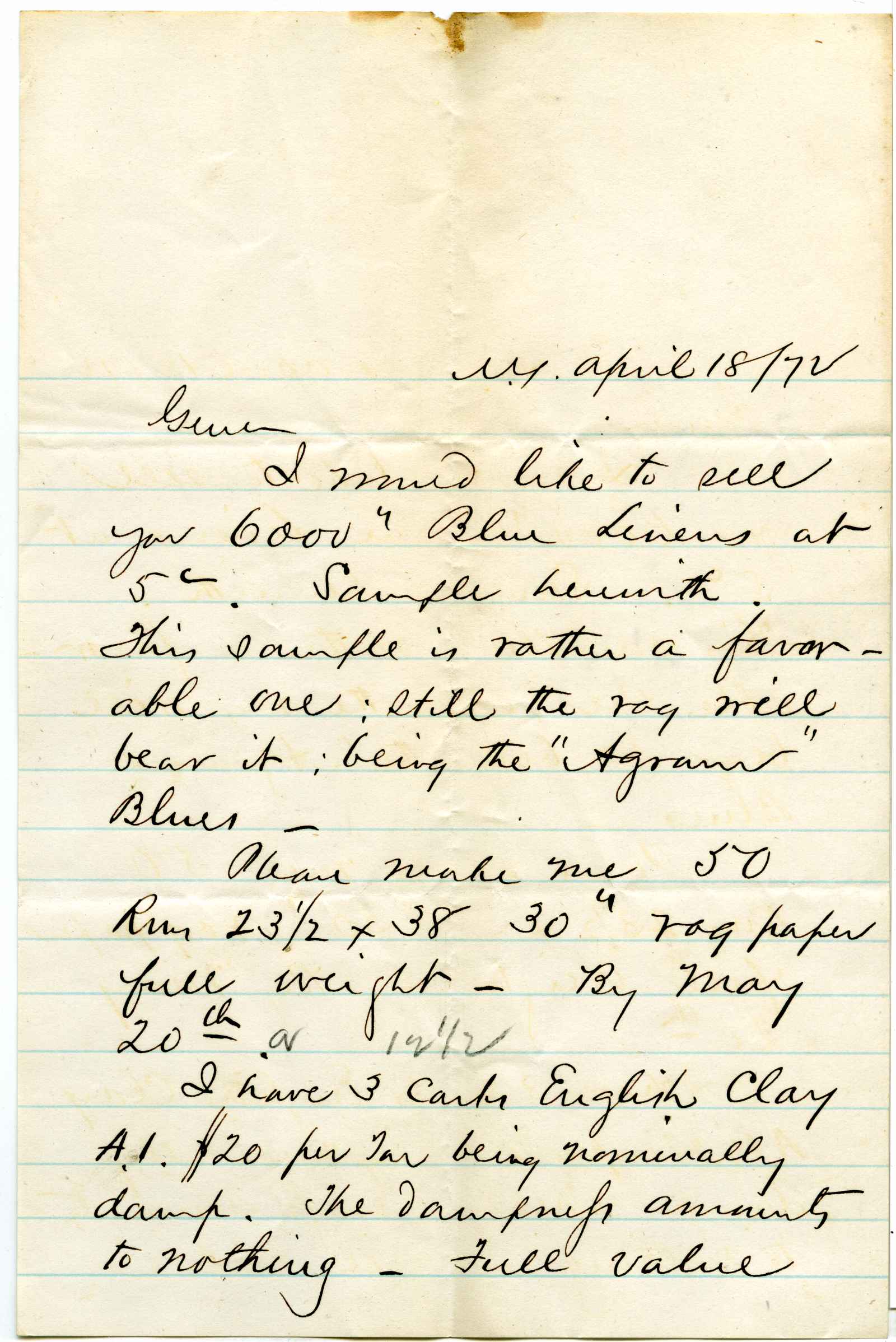incoming correspondence to the papermaking company of Elisha Wells - circa 1870