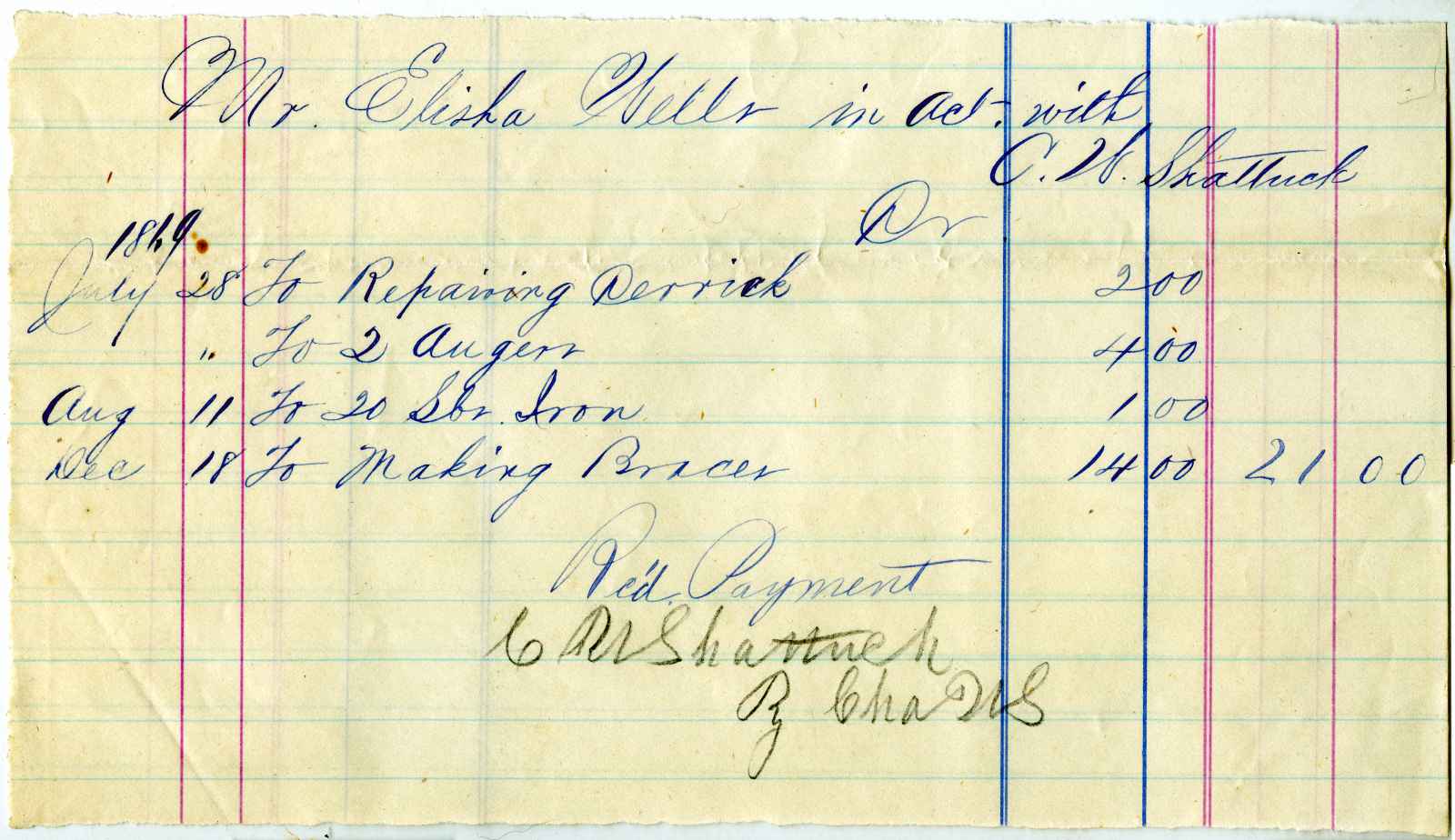 letter; Shattuck, C. W. - Repairs and Toolmaking - Shattuckville, Ma.