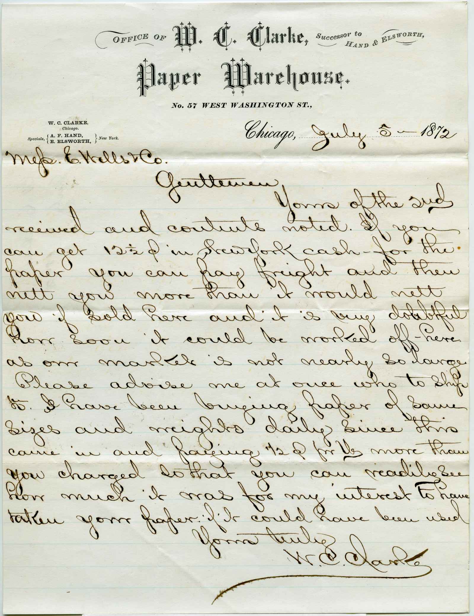 letter; Clarke, W. C. - Paper Warehouse - Chicago