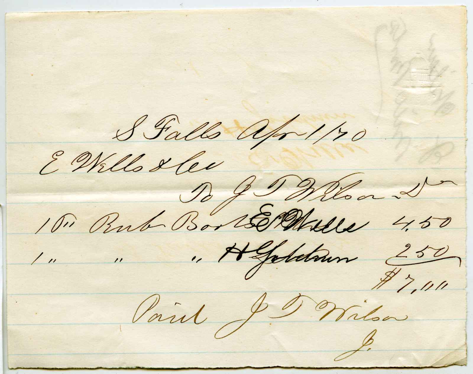 receipt; Wilson, J. T. jr. - Bill for books - Shelburne Falls, Ma.