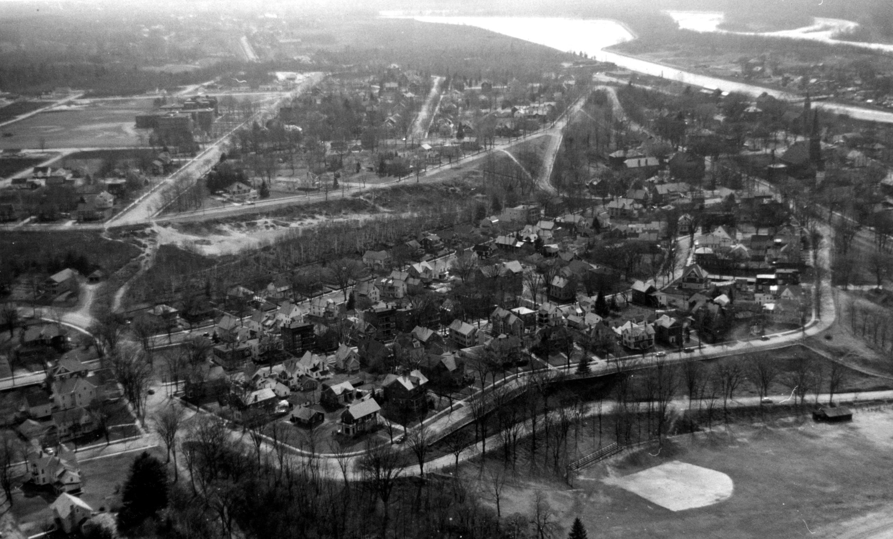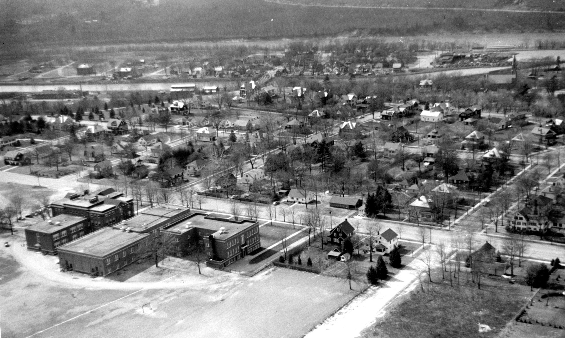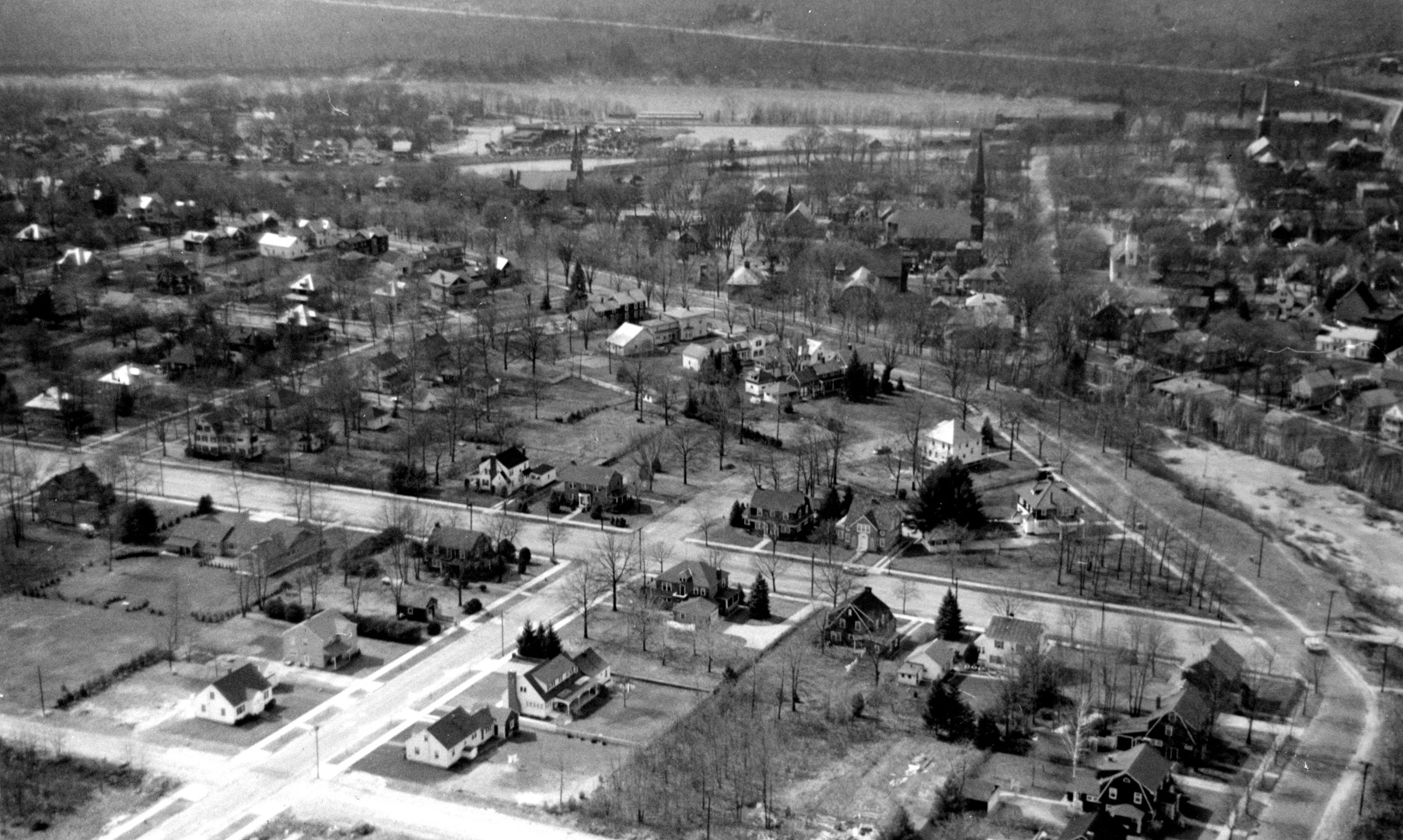 A gallery of 31 aerial photos showing various areas of Turners Falls, MA c1945