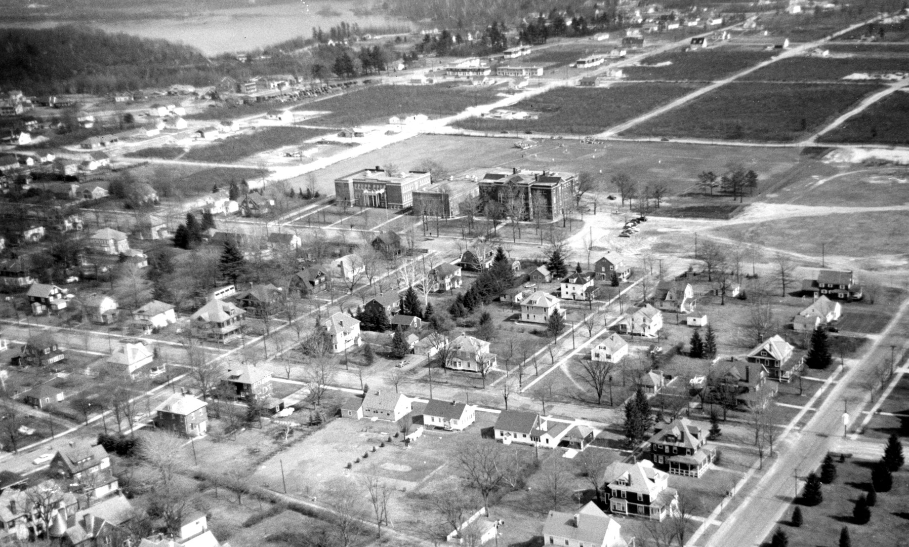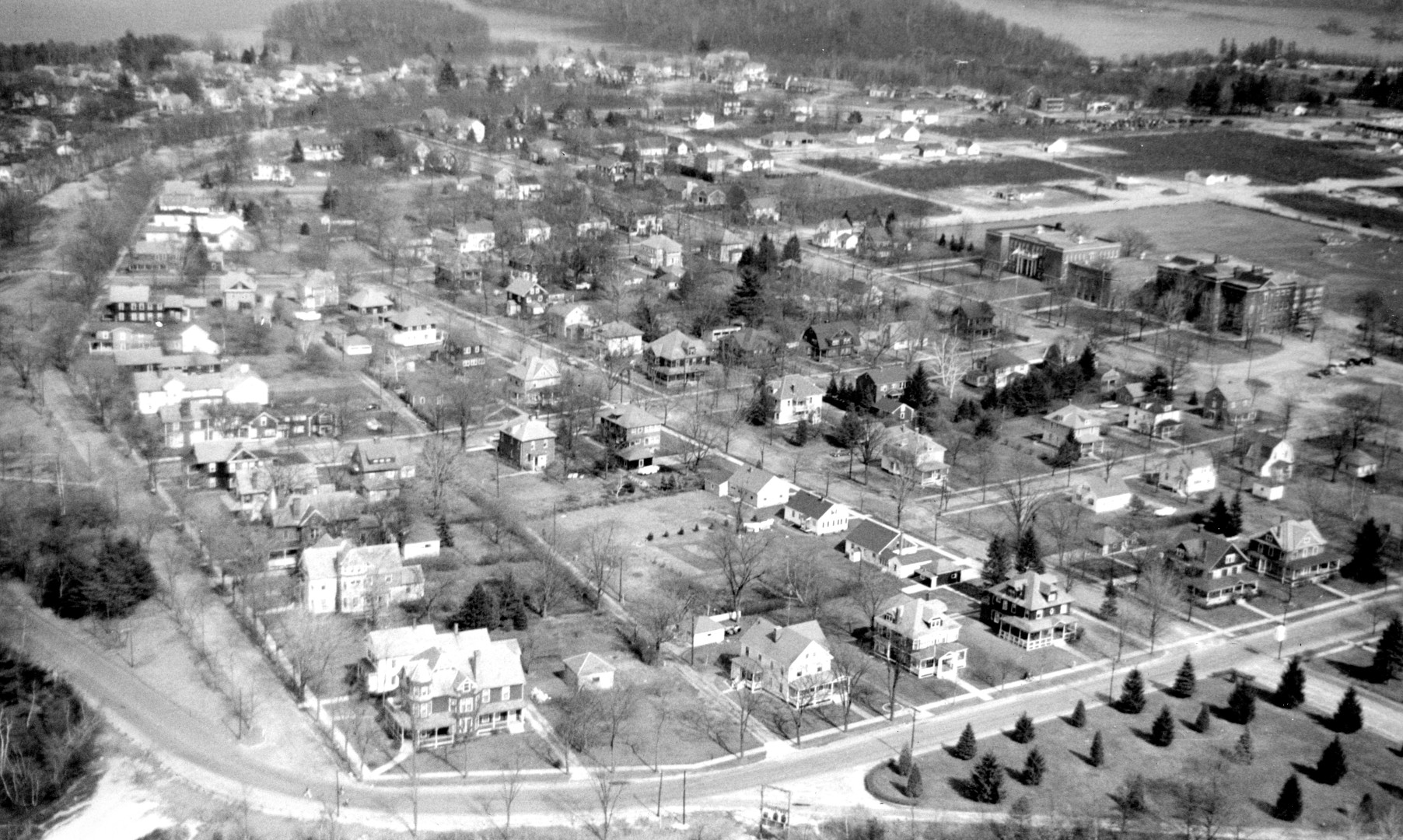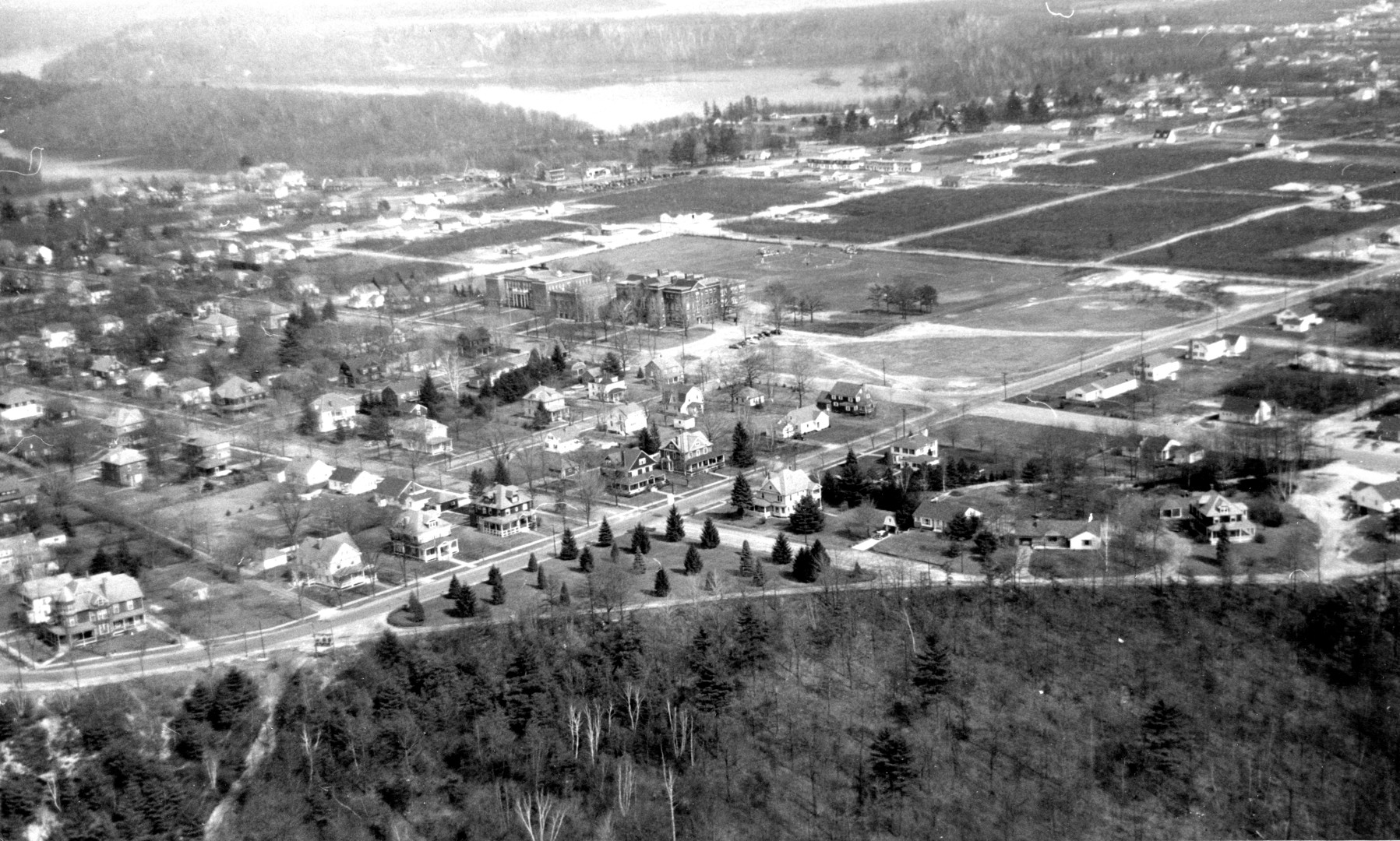 A gallery of 31 aerial photos showing various areas of Turners Falls, MA c1945