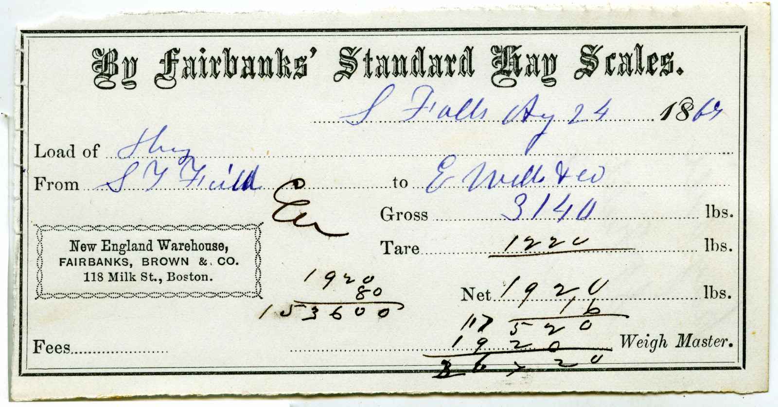 receipt; Fairbanks Scale Warehouse - Scale Rental - Boston