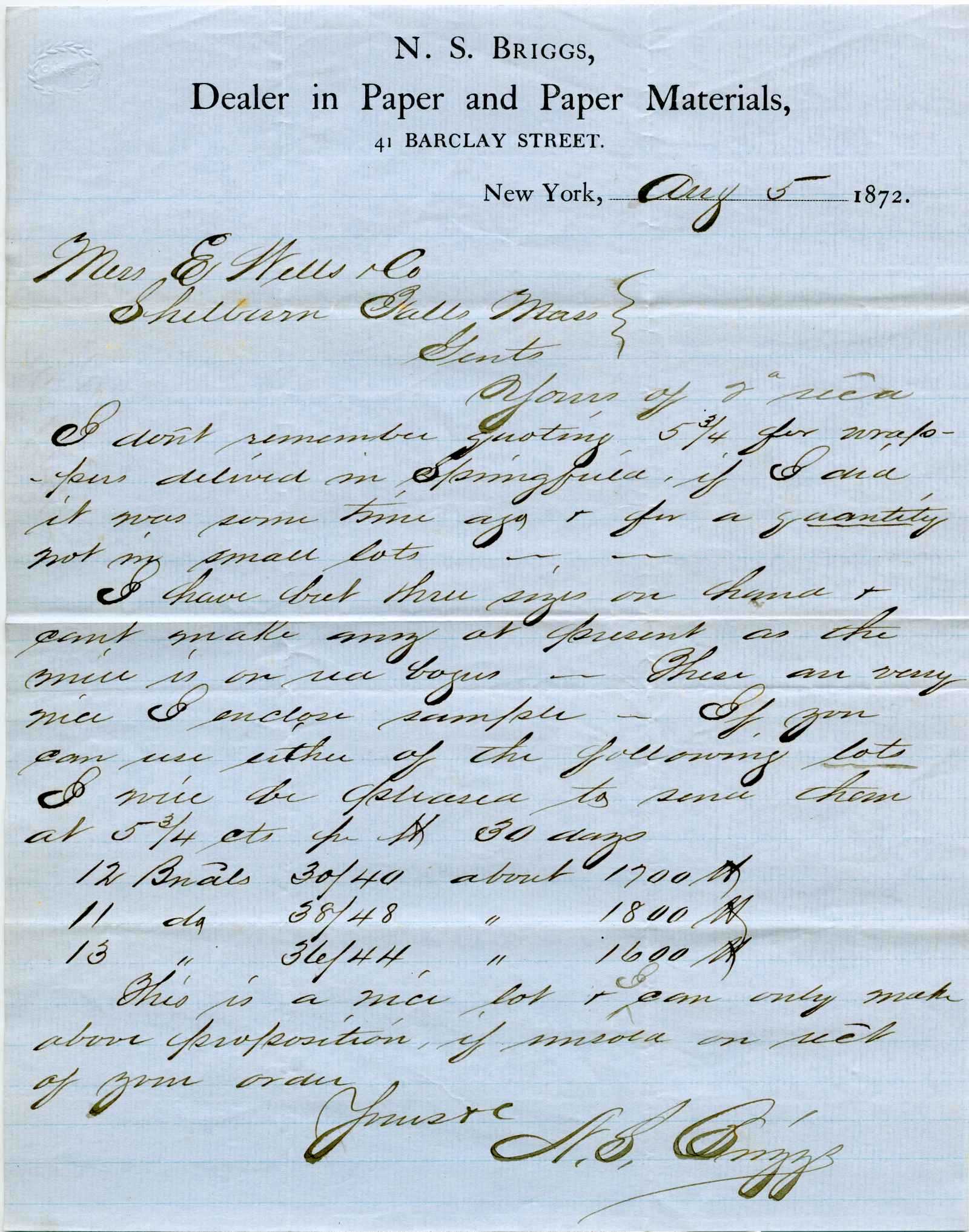 letter; Briggs, N. S. - Paper Sales - N.Y.