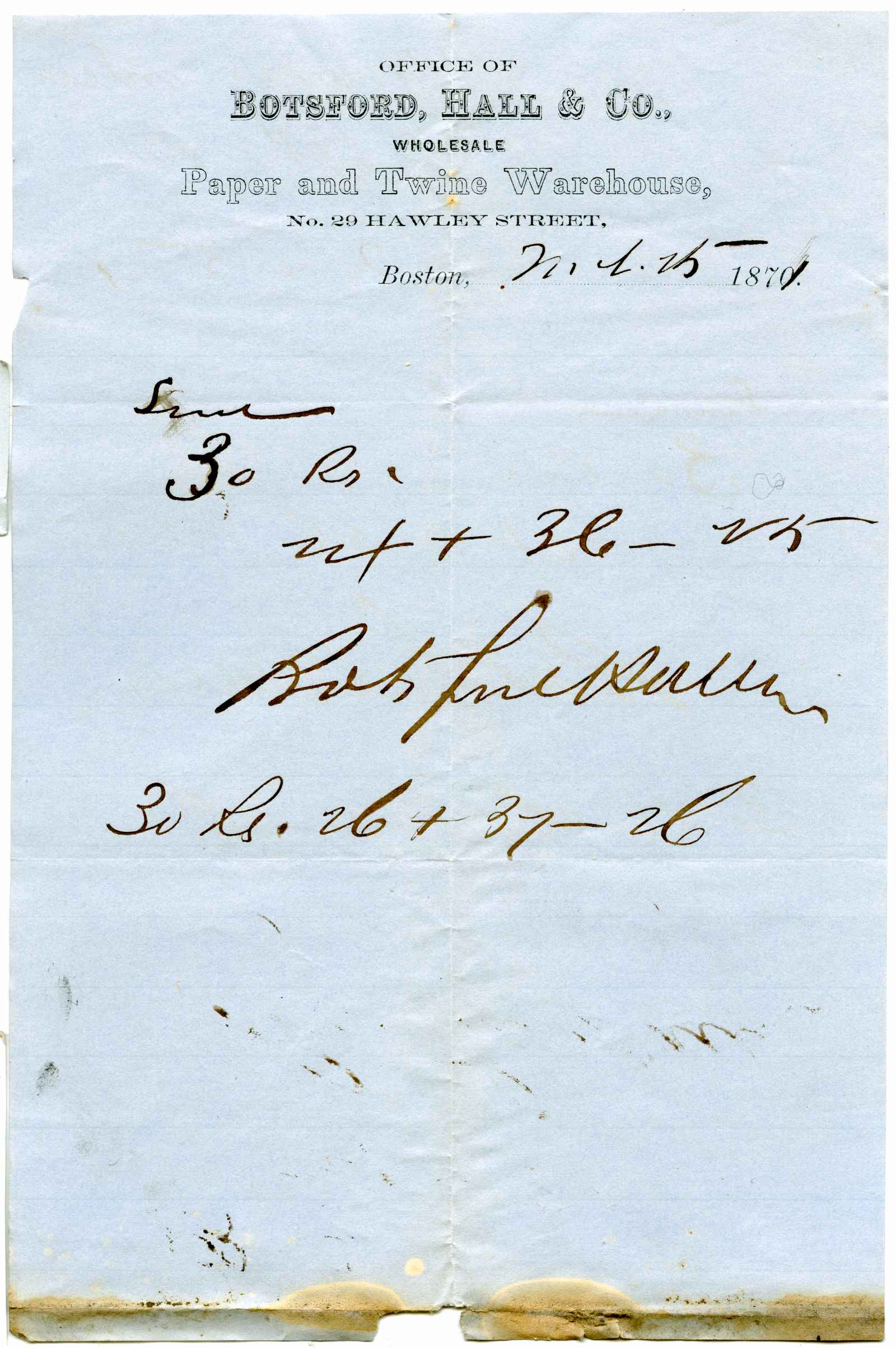 invoice; Botsford, Hall & Co. - Paper & Twine - Boston
