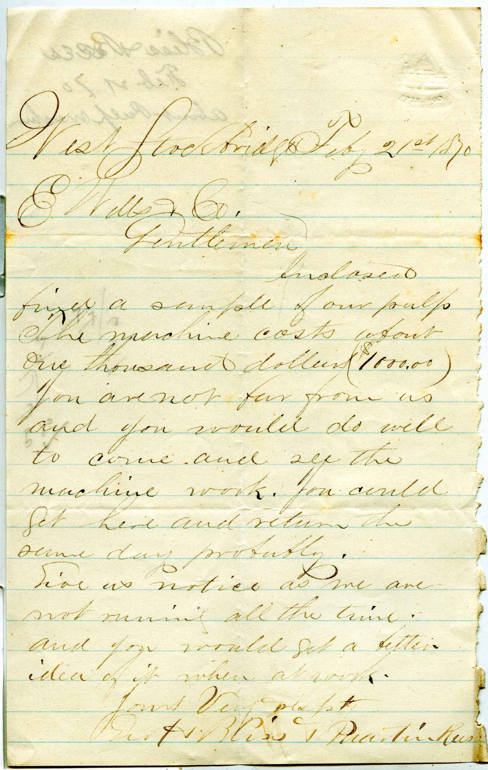 | dc.description | letter; Bliss & Rees - Pulp Machine Sale - West Stockbridge, Ma. | |