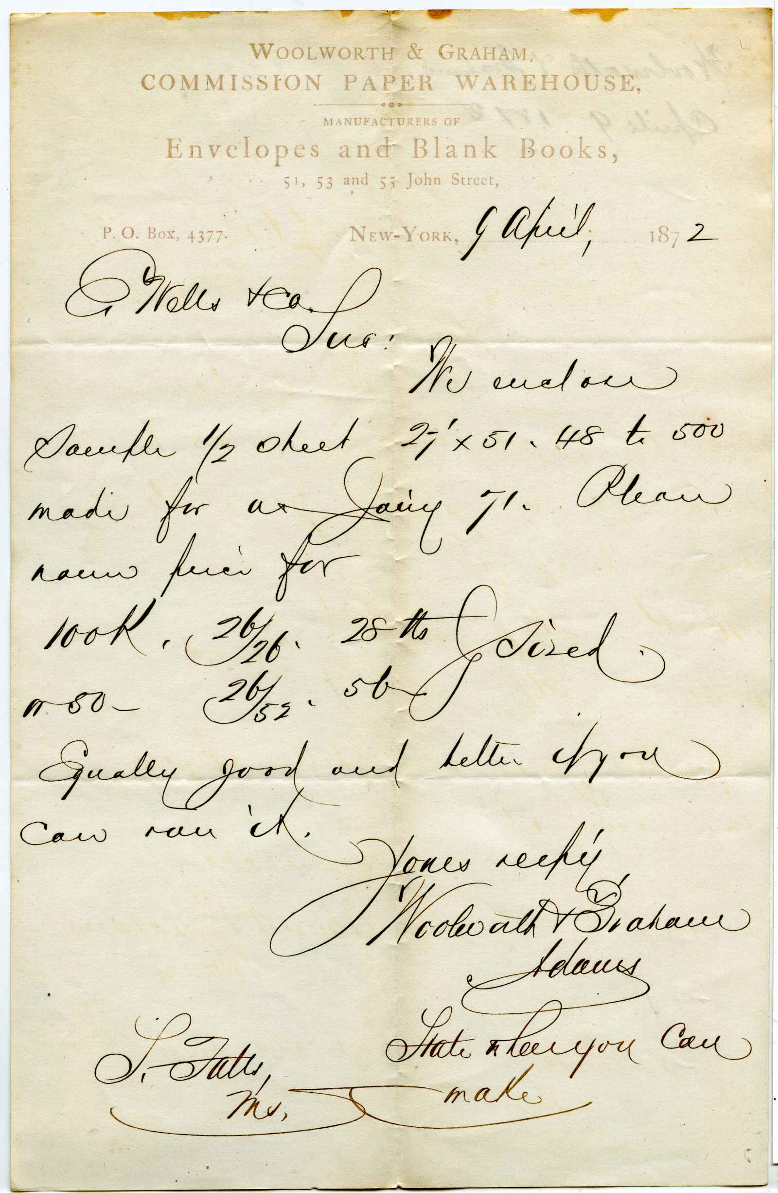 letter; Woolworth & Graham - Manufacturers of Envelopes and Blank Books - N.Y.