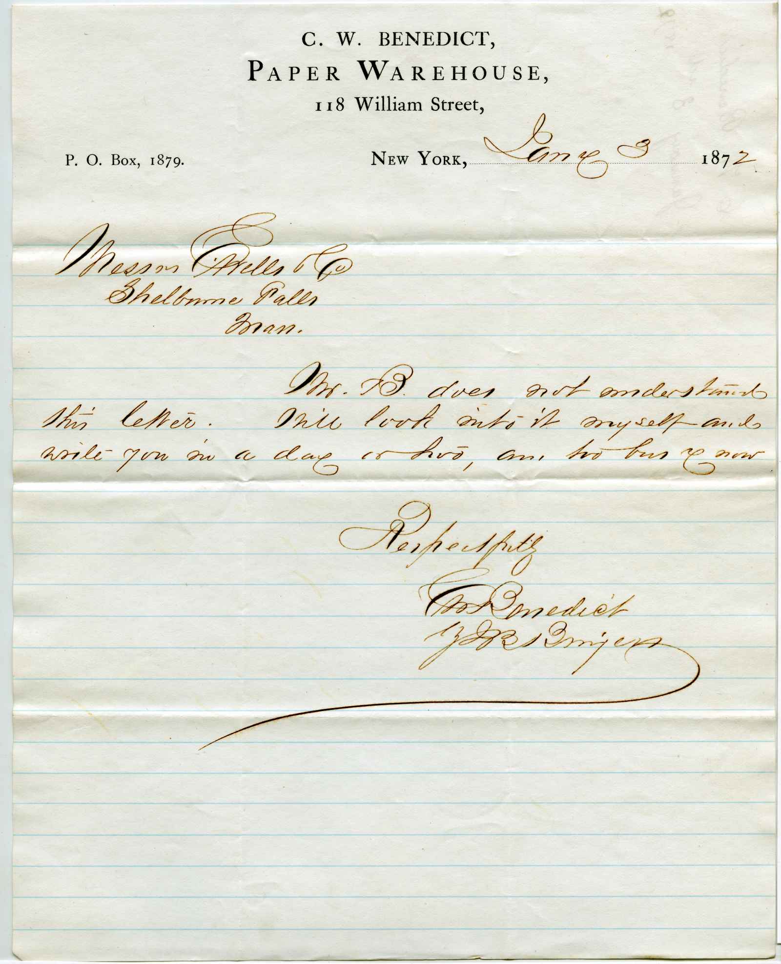 letter; Benedict, C. W. - Paper Warehouse - N.Y.