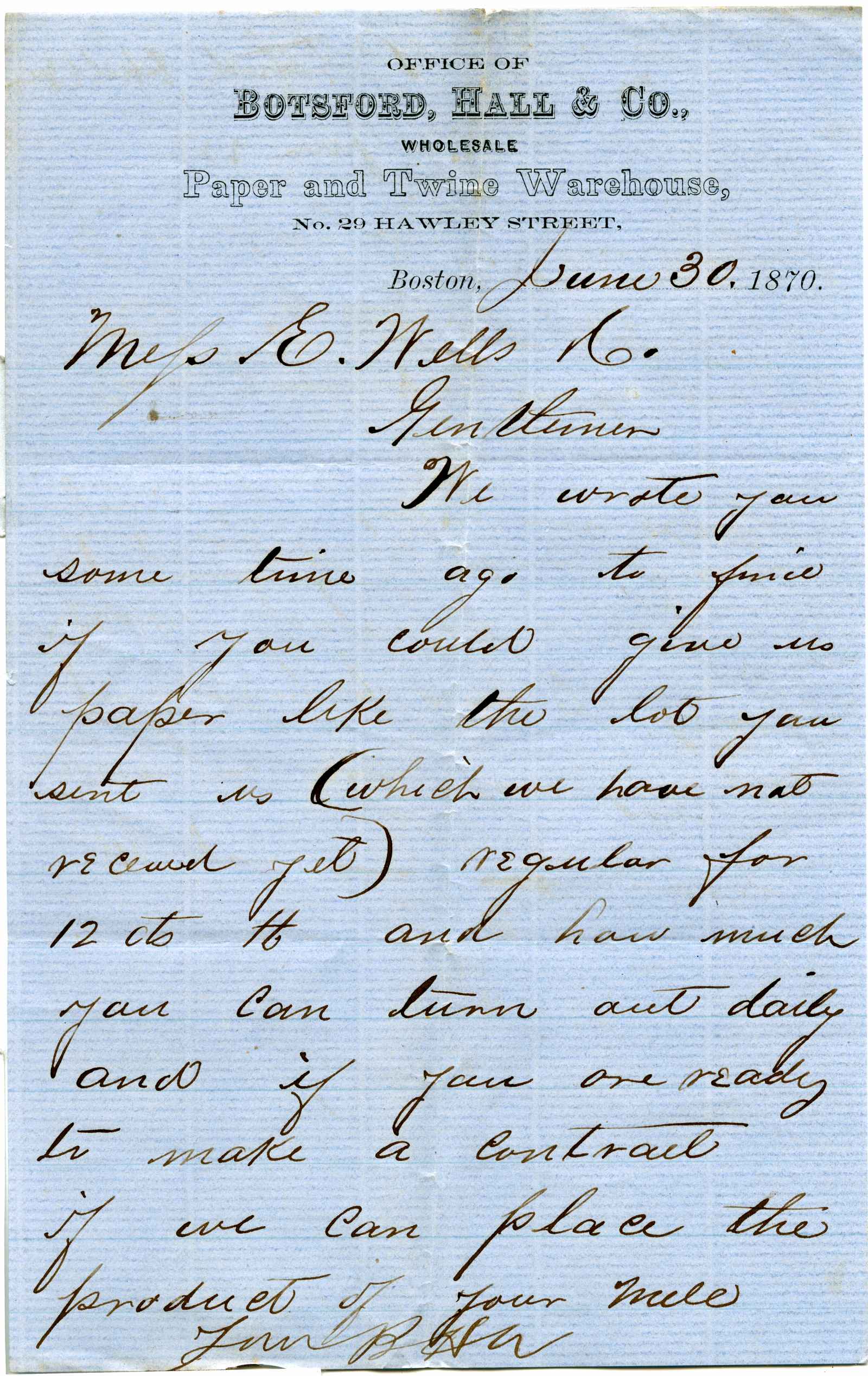 letter; Botsford, Hall & Co. - Paper & Twine - Boston