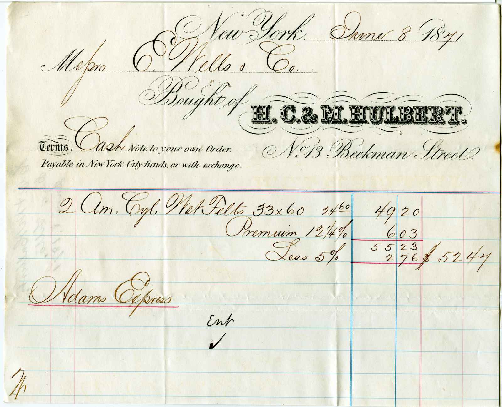 incoming correspondence to the papermaking company of Elisha Wells - circa 1870