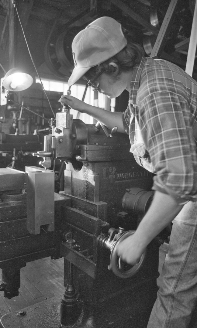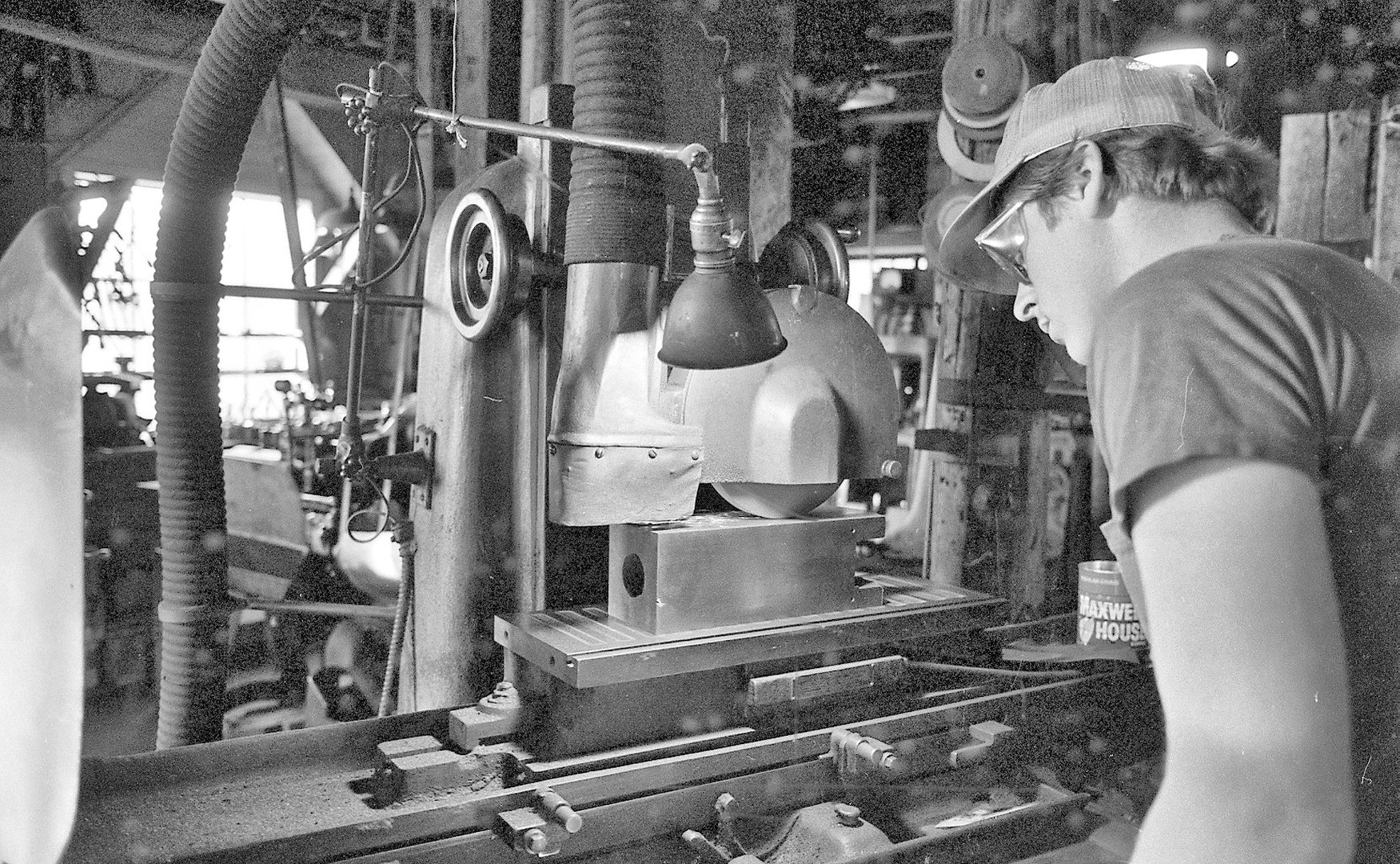 The probable date of each image is in the File Name, i.e., 1eg78mmco.jpg. The number in the name (78) is the year of the image . . . 1978. In 1834 the Sawmill River at its cascading water-fall—where today the Montague Book Mill (1987) is located—powered millstones that ground grain into flour in a grist mill that was operated by Alvah Stone. Further back, there was an 18th century (unidentified) grist mill in this location. Subsequent proprietors of the “Stone’s Grist Mill” were, L.H. Stone, S.S. Holton, Sylvester Bangs, W.H. Nims and George M. Stratton. In the 1930s the mill was converted into a machine shop, where the Martin Machine Company made machineries to stamp and etch markings into or on a plethora of metal and wood shapes and devices. The most recognizable retail mark is the oval trademark that is stamped into every Louisville Slugger baseball bat. Martin machine ceased operations in the mid 1960s.