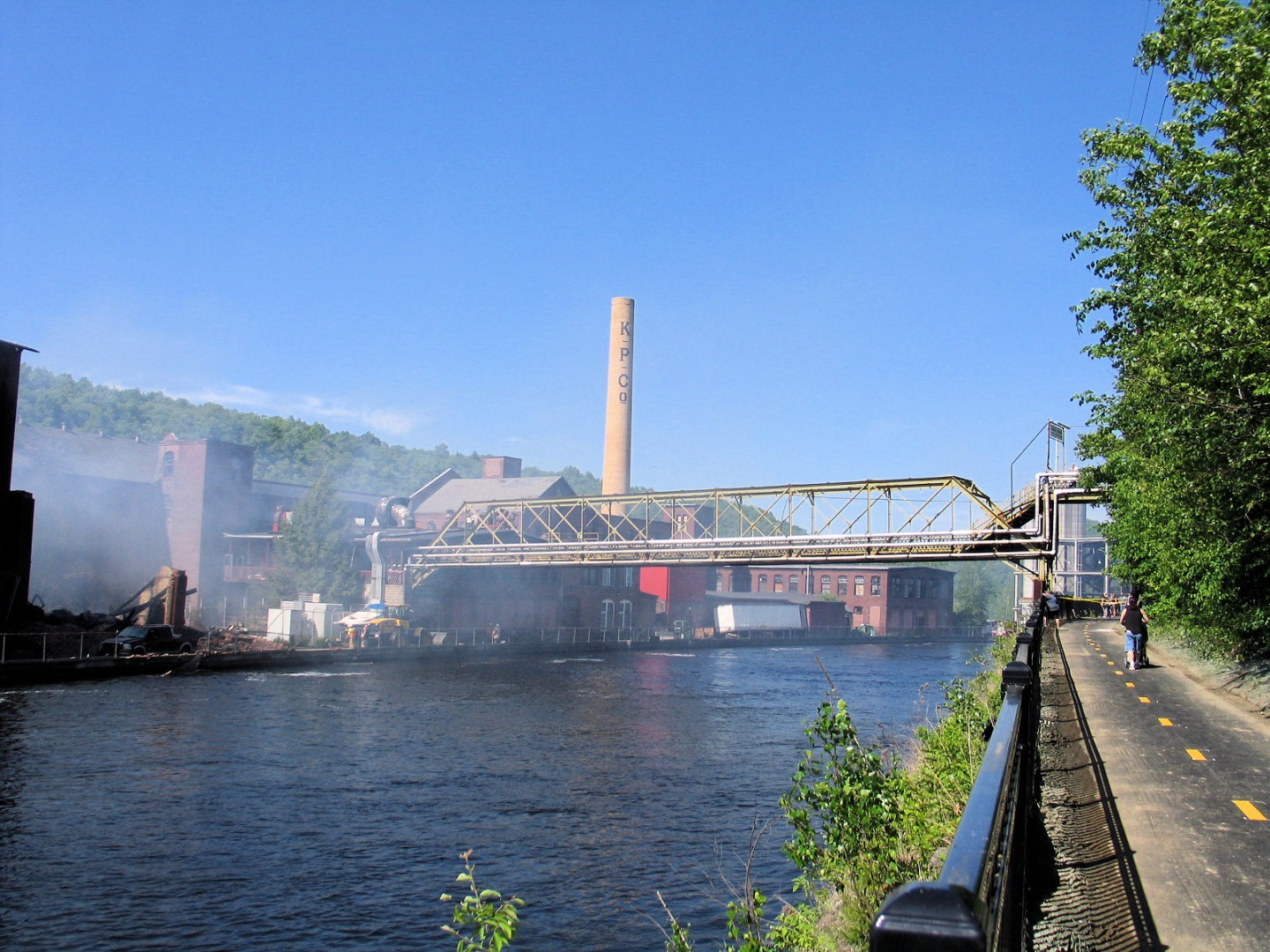 - Headin' west on the Turners Falls Canalside Rail Trail (bike path) the fire site is evident.