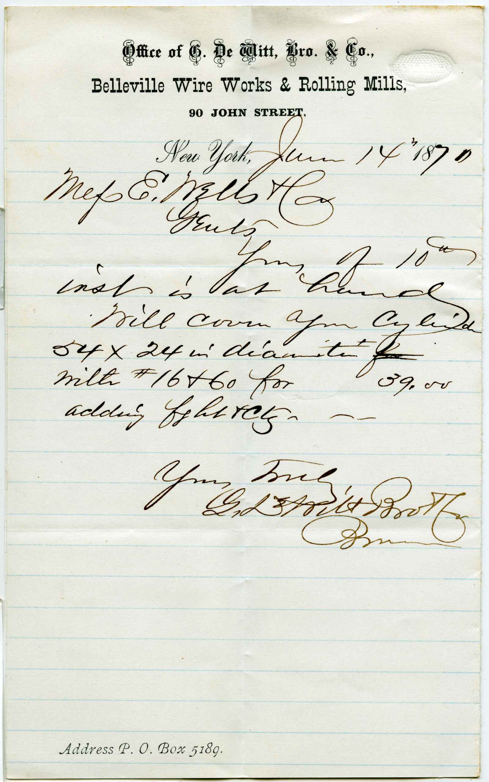 letter; DeWitt, G., Brother & Co. - N.Y.
