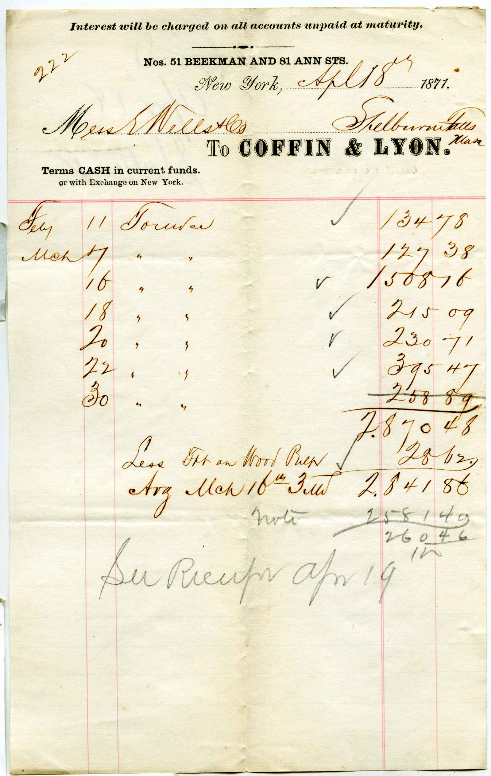 account; Coffin & Lyon - Wholesale Paper Warehouse - N.Y.