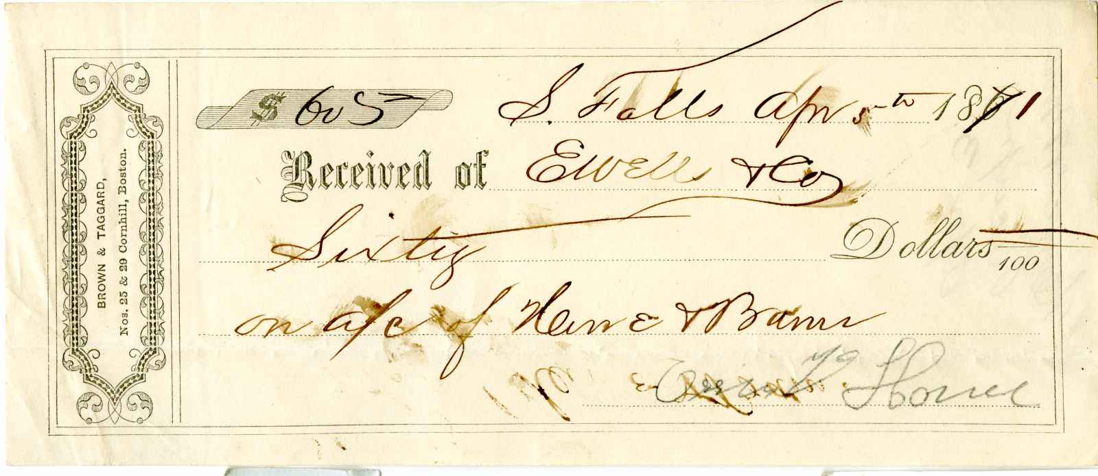 receipt; Heine & Barnes - Shelburne Falls - signed by Heine