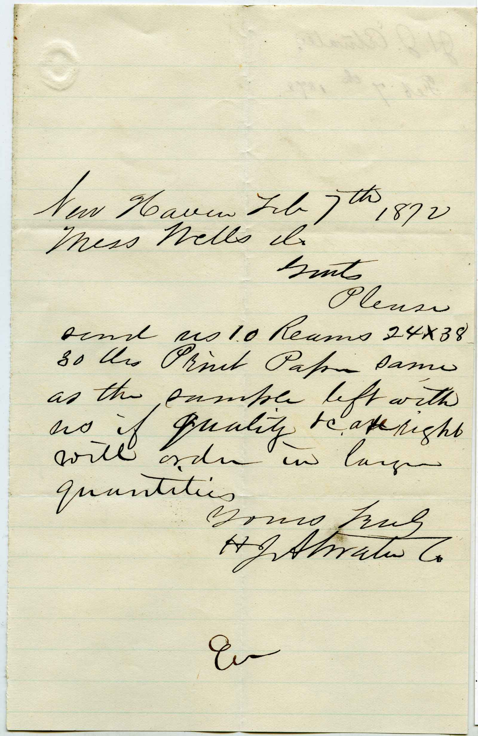 incoming correspondence to the papermaking company of Elisha Wells - circa 1870
