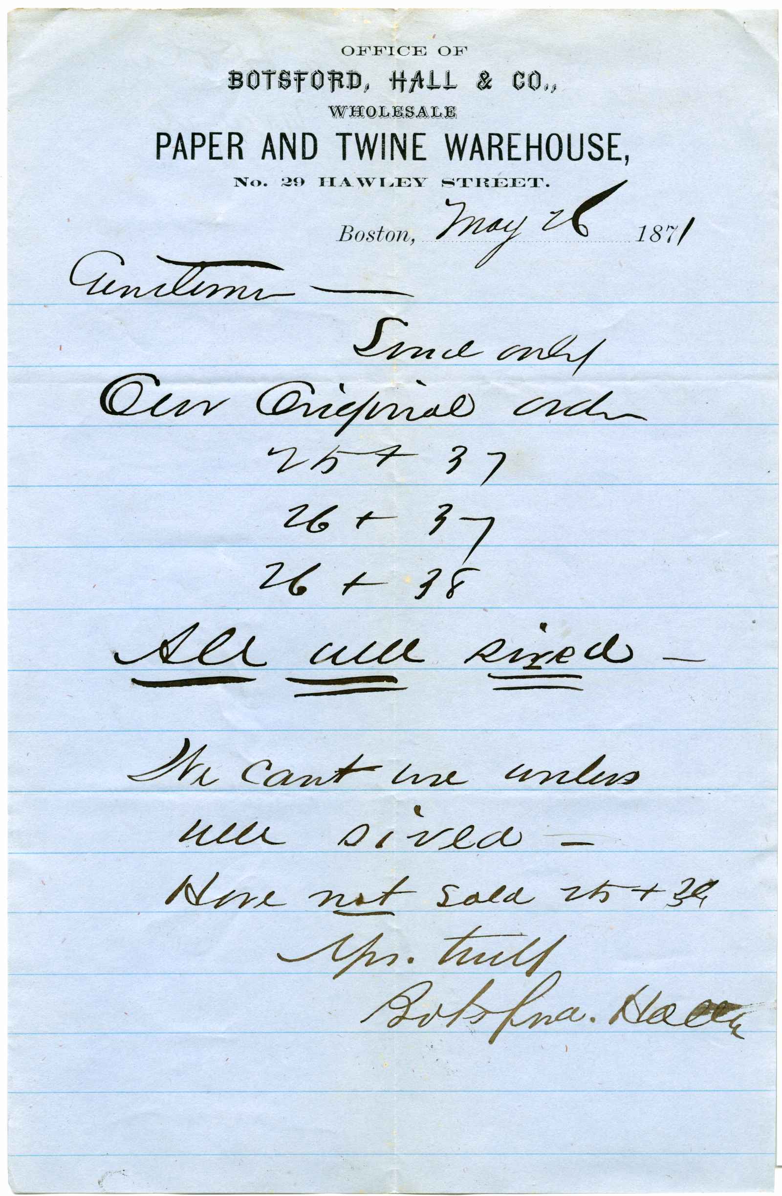 | dc.description | letter; Botsford, Hall & Co. - Paper & Twine - Boston | |
