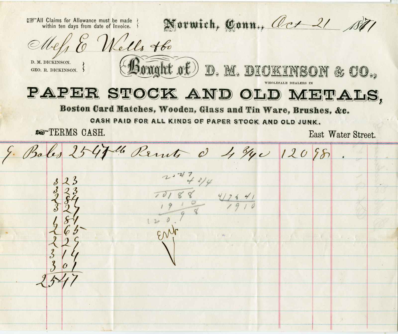 | dc.description | invoice; Dickinson, D. M. - Paper Stock & Old Metals - Norwich, Ct. | |