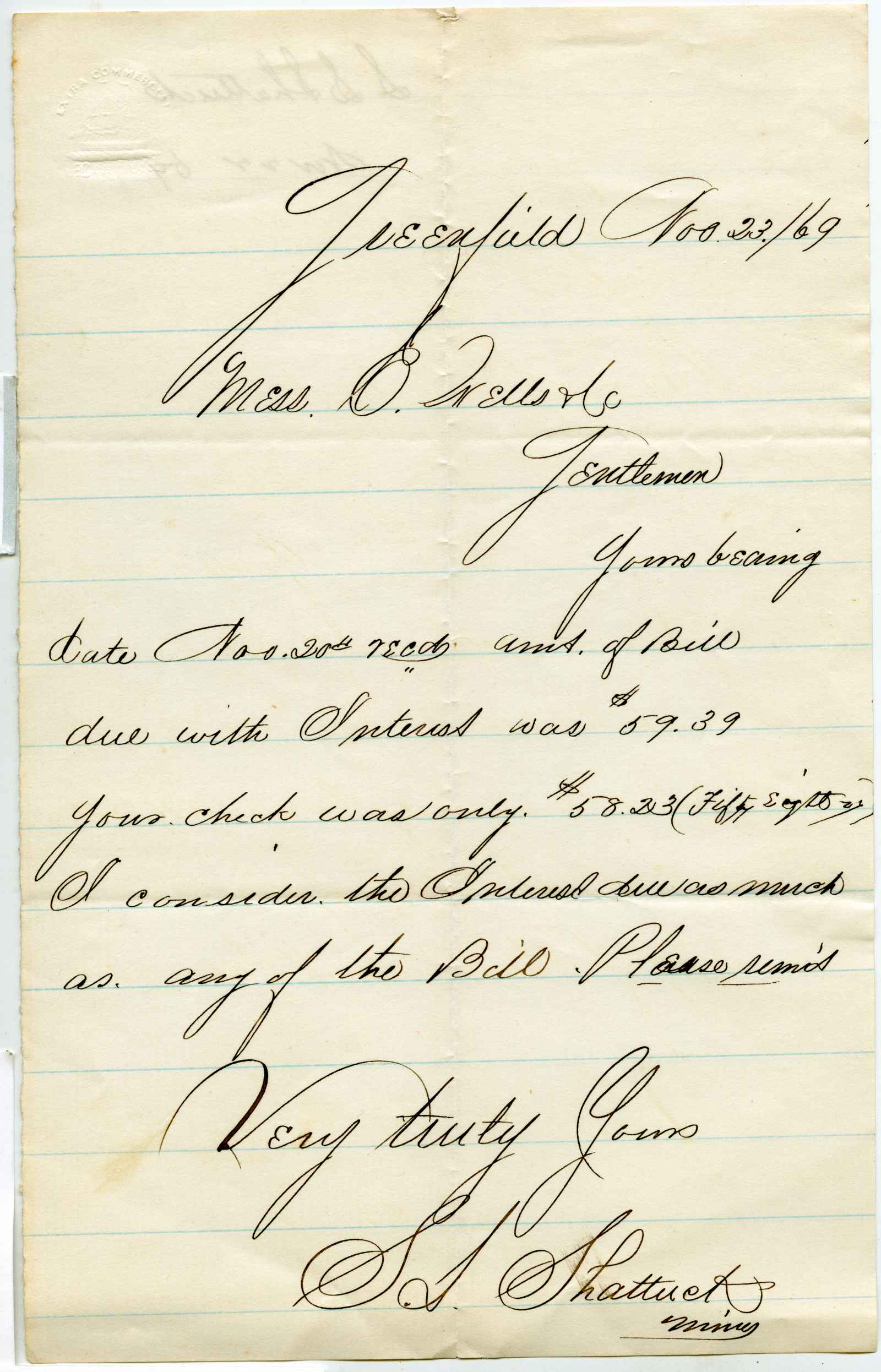 letter; Shattuck, S. L. or S. S. - Billing error.