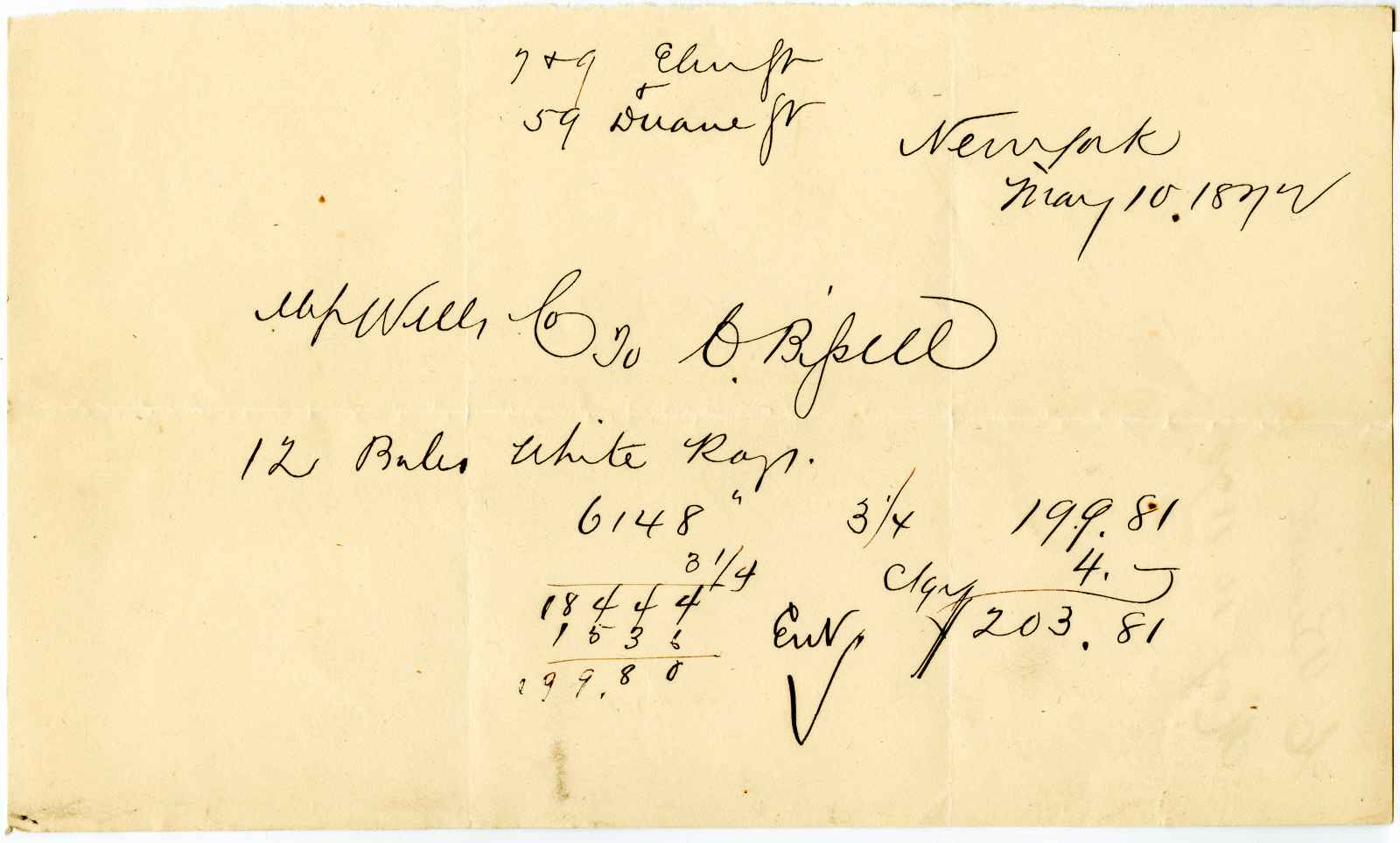 incoming correspondence to the papermaking company of Elisha Wells - circa 1870