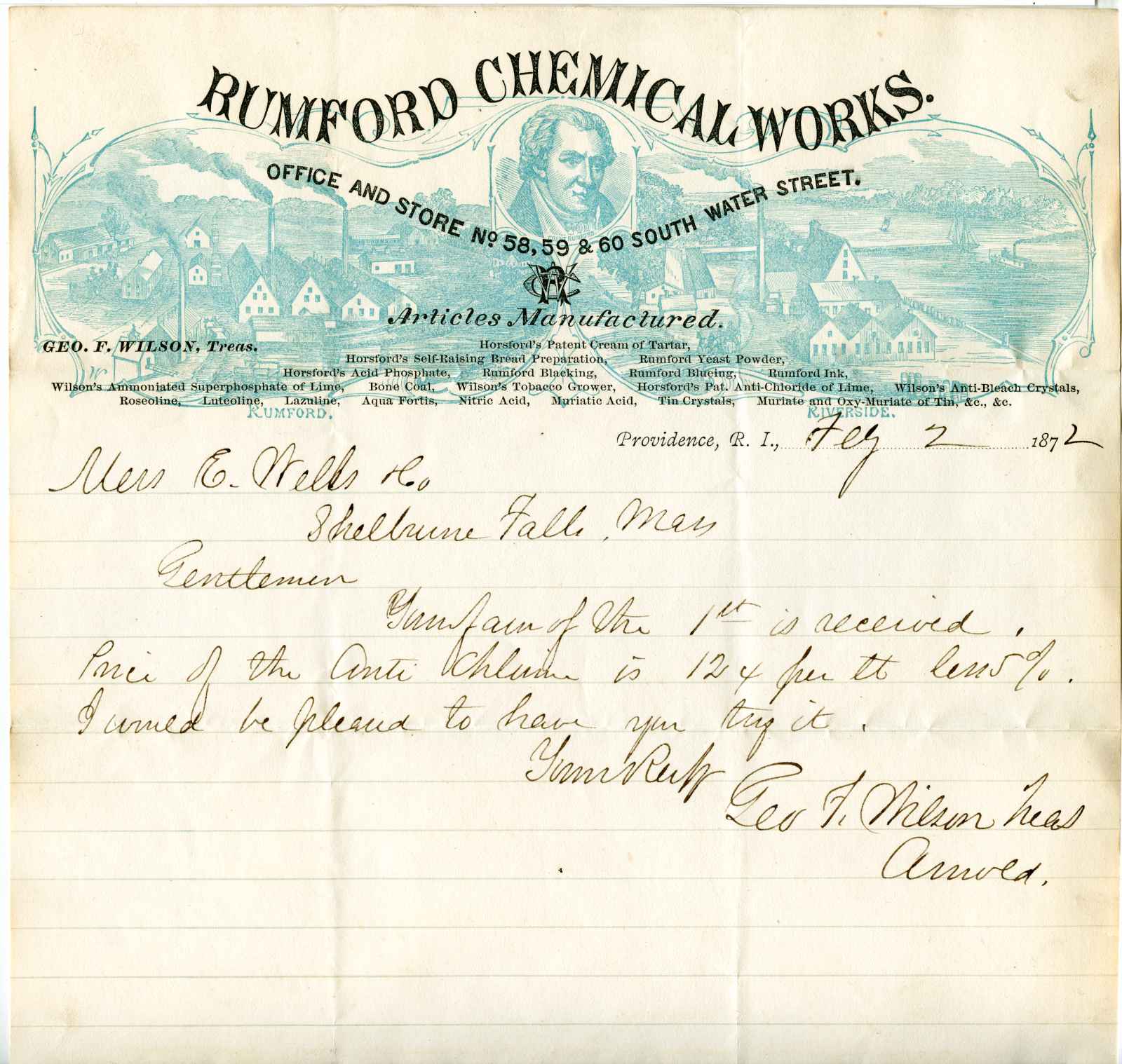 letter; Rumford Chemical Works - Business letter - Providence, R.I.