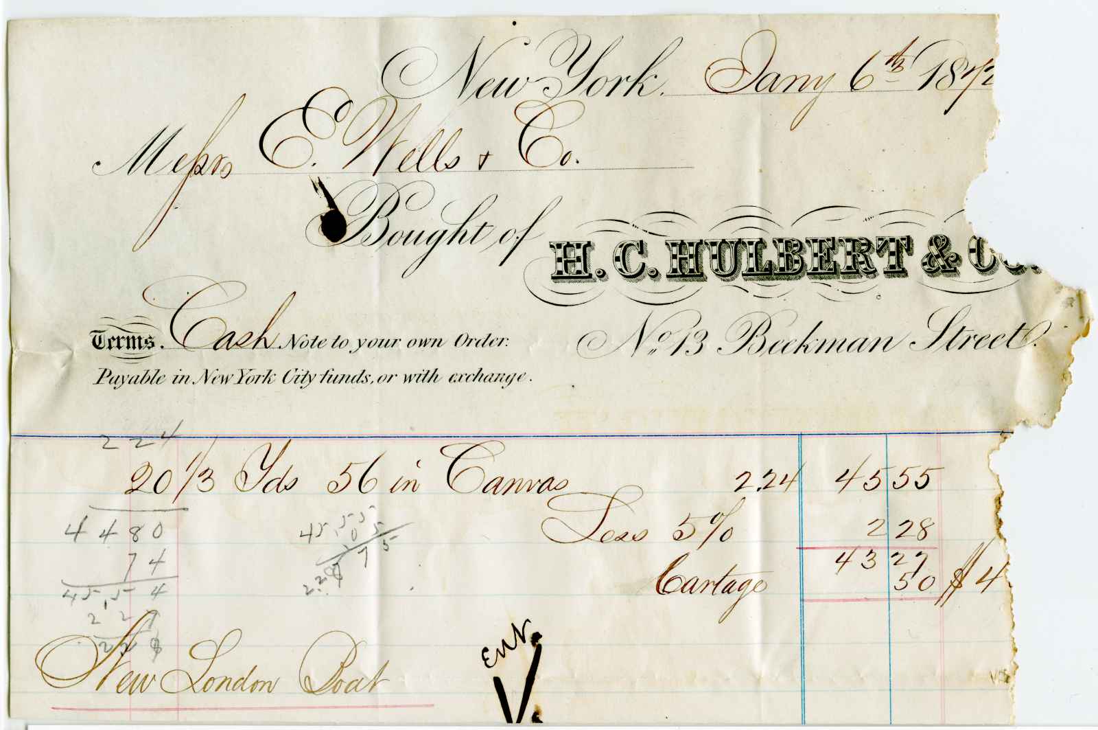 invoice; Hulbert, H. C. & Co. - Soda Ash - N.Y.