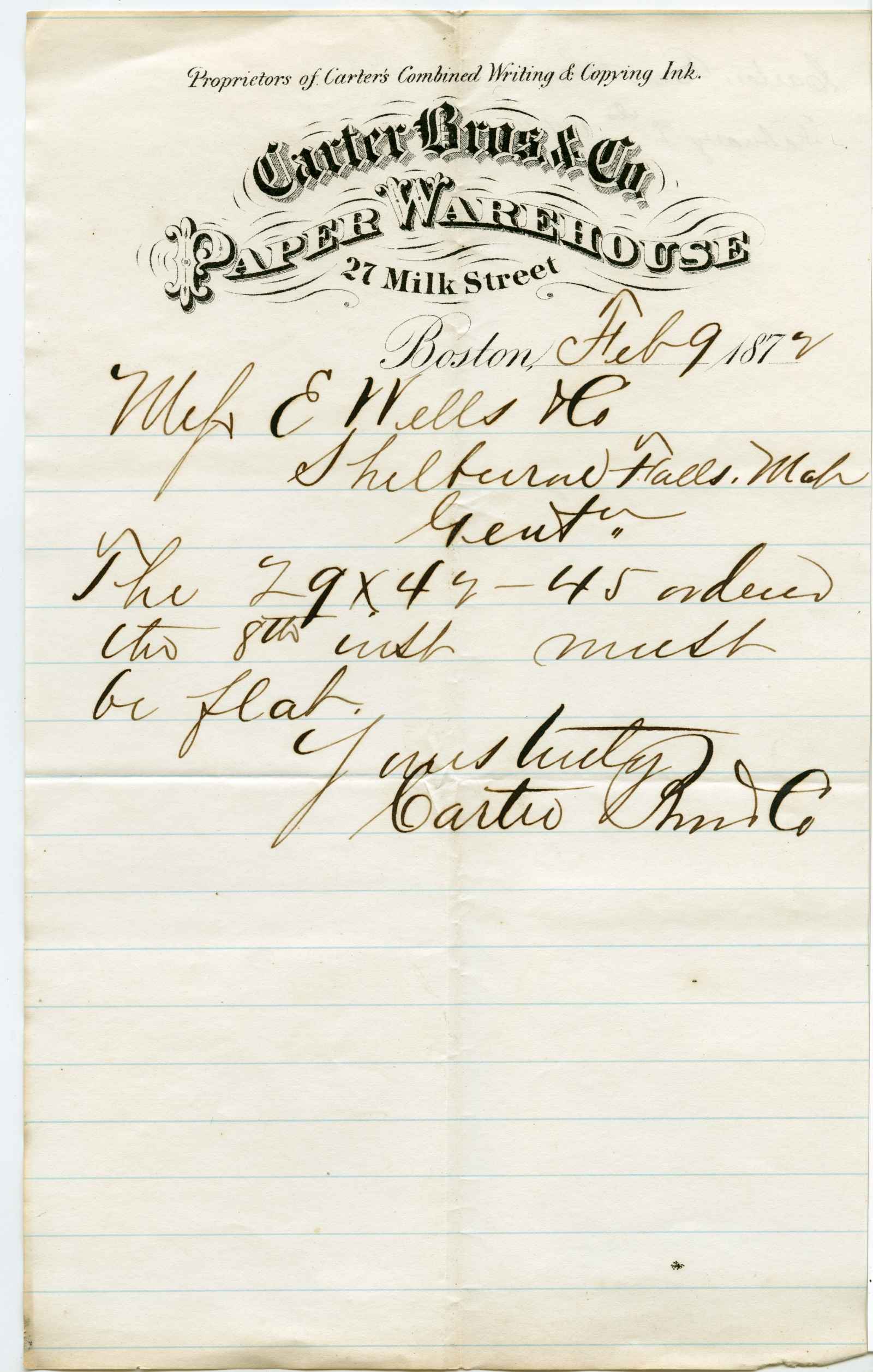 letter; Carter Bros, & Co. - PaperWarehouse - 27 Milk St - Boston