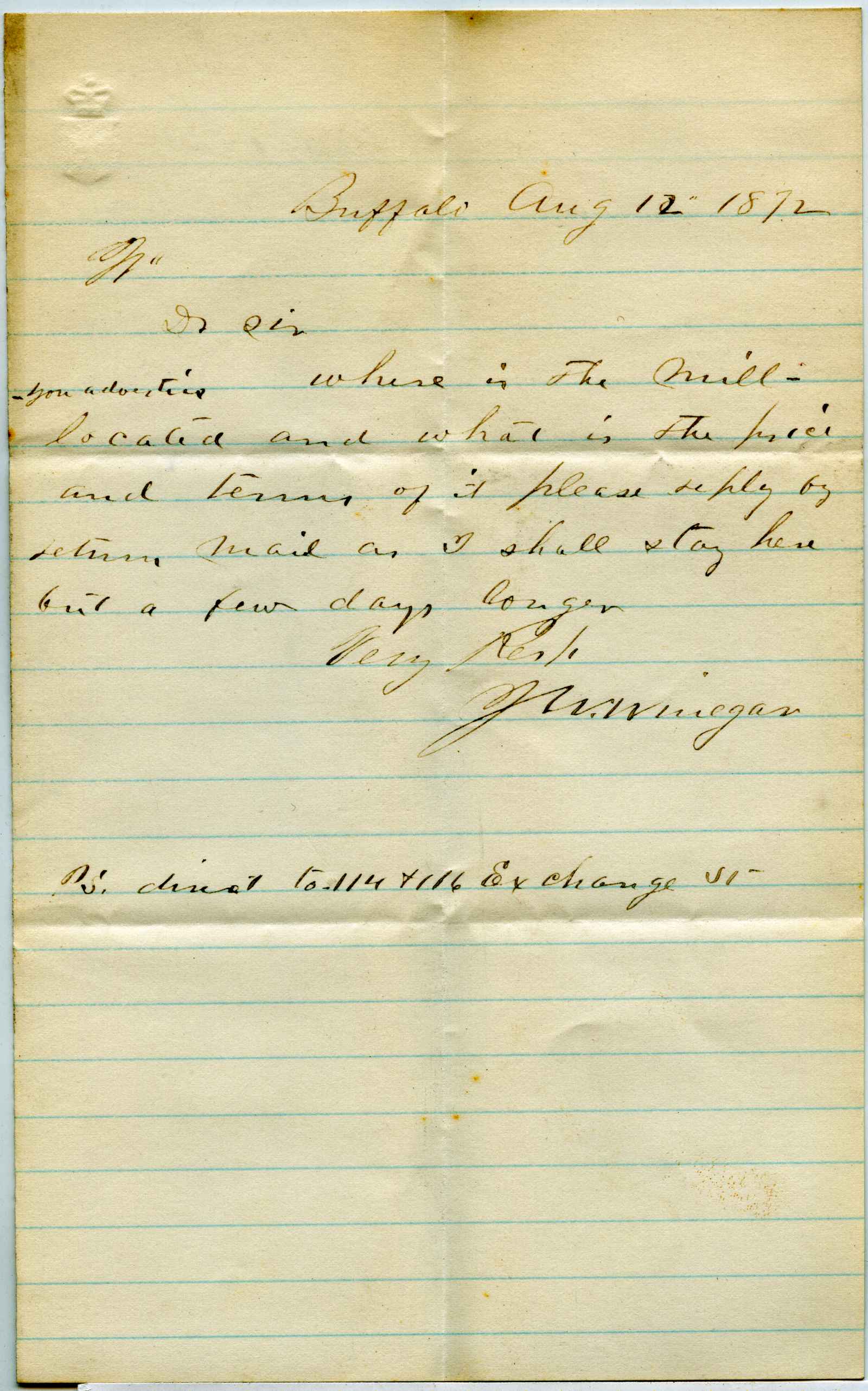 | dc.description | letter; Winegar, J. W. - Needs direction to mill - Buffalo, N.Y. | |