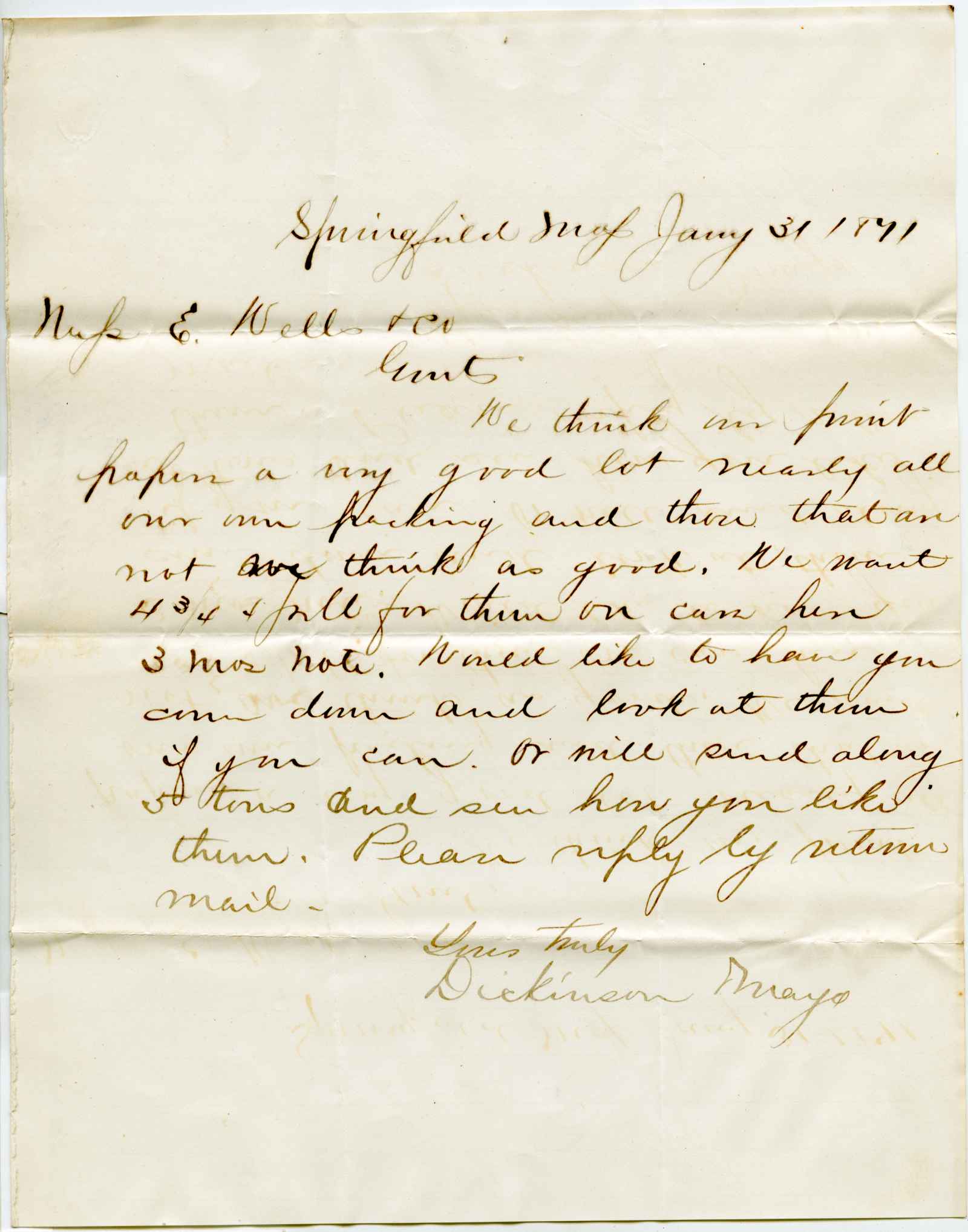 letter; Dickinson & Mayo - Paper Stock & Old Metals - Springfield, Ma.
