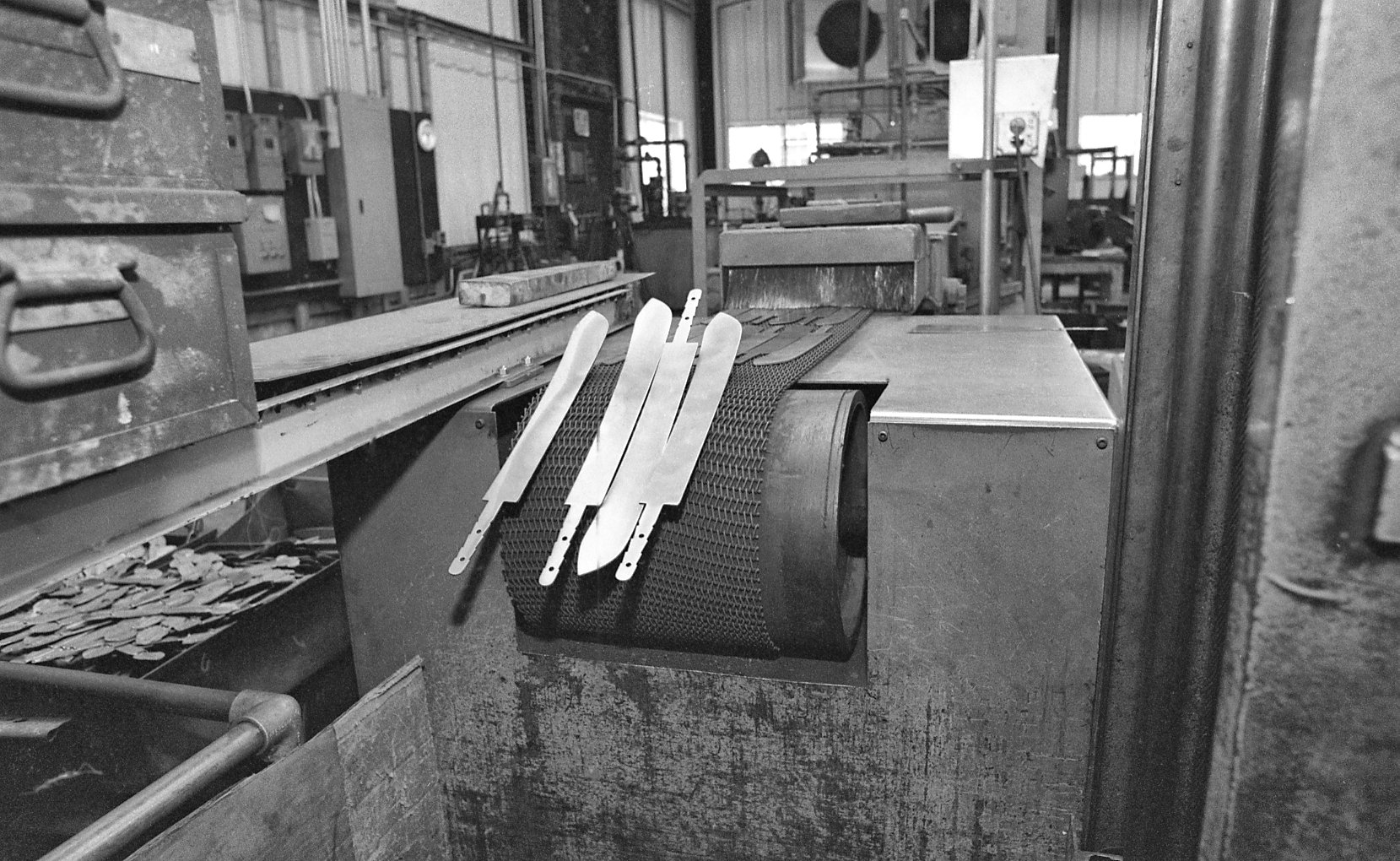 The present company was organized in 1856, and have several times enlarged their facilities and capital stock, each time to meet actual demands, and at this time the works comprise some eight or nine commodious brick and frame buildings, of one to three-and-a-half stories, some roofed with sheet iron, and covering in all two and a half acres. The company own thirty acres of land and the dam on the premises—24 feet fall, affording 300 horse power — and have the option of another equal power just below, their own water privilege consisting of seven acres, and being one of the most desirable on the Deerfield river. Their machinery equipment is first-class, and embraces every device suitable to the work to be performed — forges, trip hammers, lathes, emery wheels, etc., in abundance and great variety. Two hundred and twenty-five skilled and unskilled operatives are employed, and the tenements in which they live form quite a village. The works contain over 30,000 square feet of flooring today, and the present business has developed from the simple manufacture of shoe and butcher knives in 1846. In 1849-50 the manufacture of table cutlery was first begun with the importation of a few workmen from Sheffield, England. The shops soon became too small and the company came over on the west side of the river, in 1850, buying two large farms, the Coleman and the Benton farms, for about $3000, and the old Benton farmhouse is still standing. Up to 1850 there was only a flash-board on a mud-sill to hold the source of power in the river, and in 1869 there was a great freshet and the first dam on the river was wiped out.