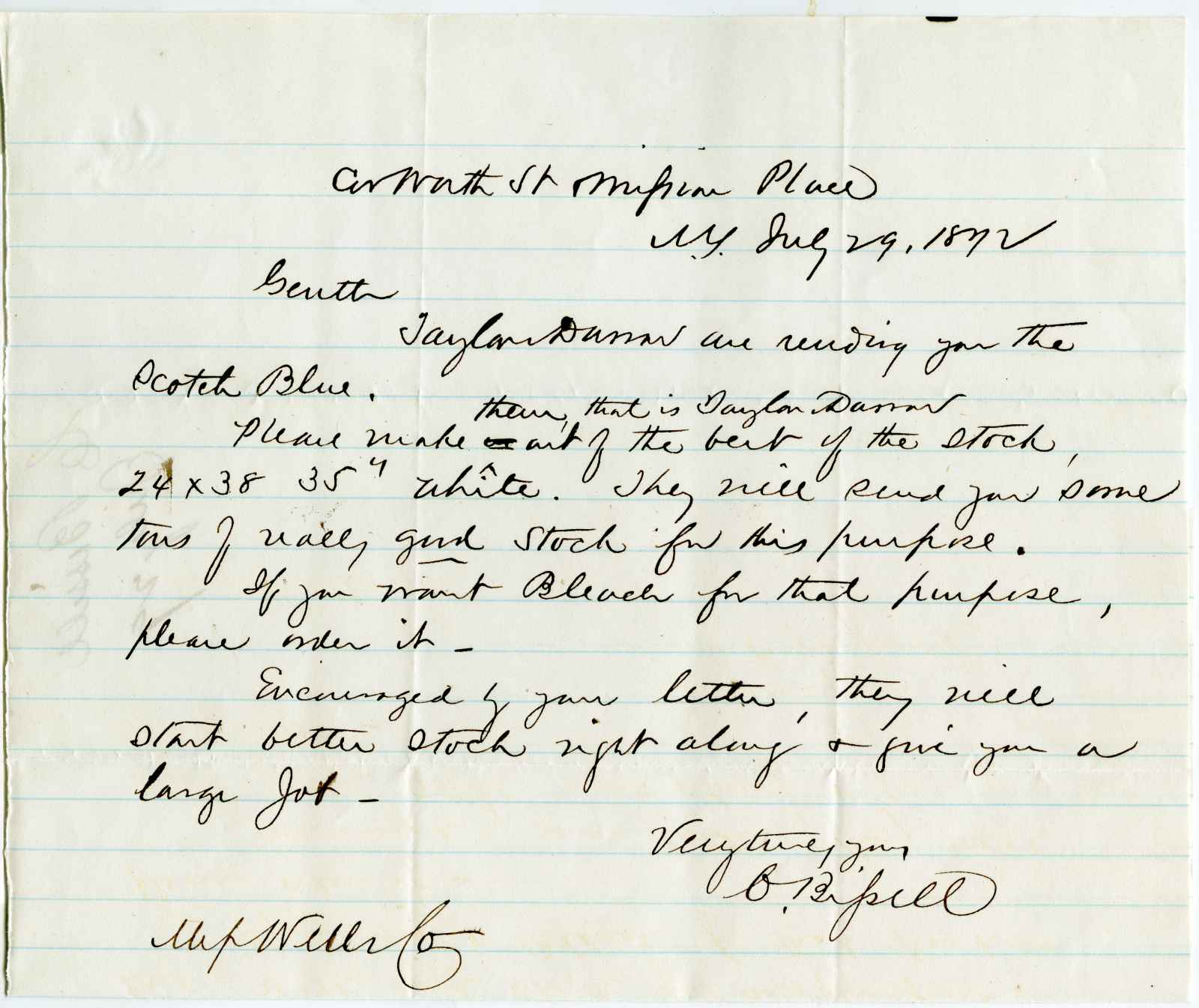 incoming correspondence to the papermaking company of Elisha Wells - circa 1870