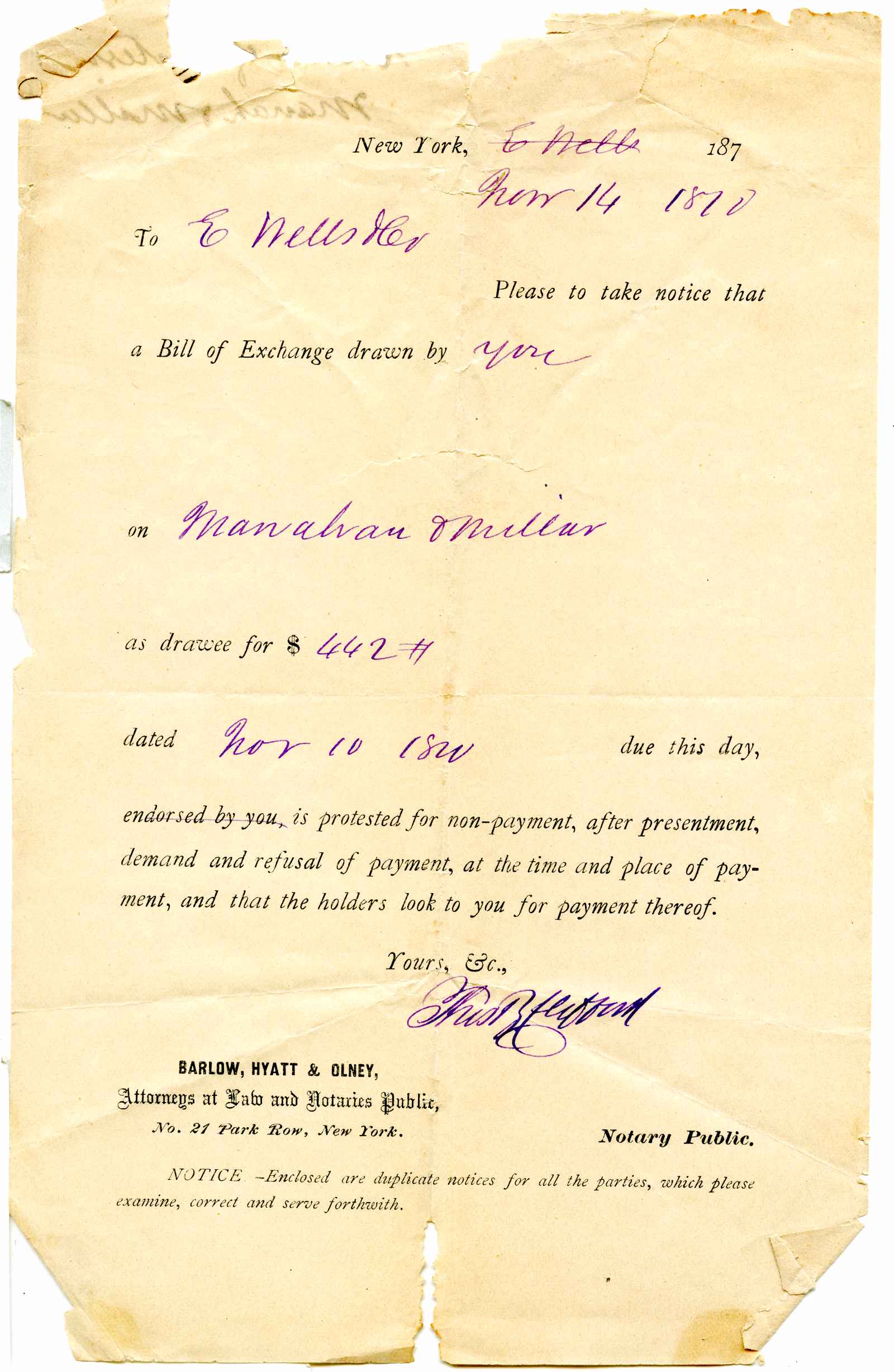 incoming correspondence to the papermaking company of Elisha Wells - circa 1870