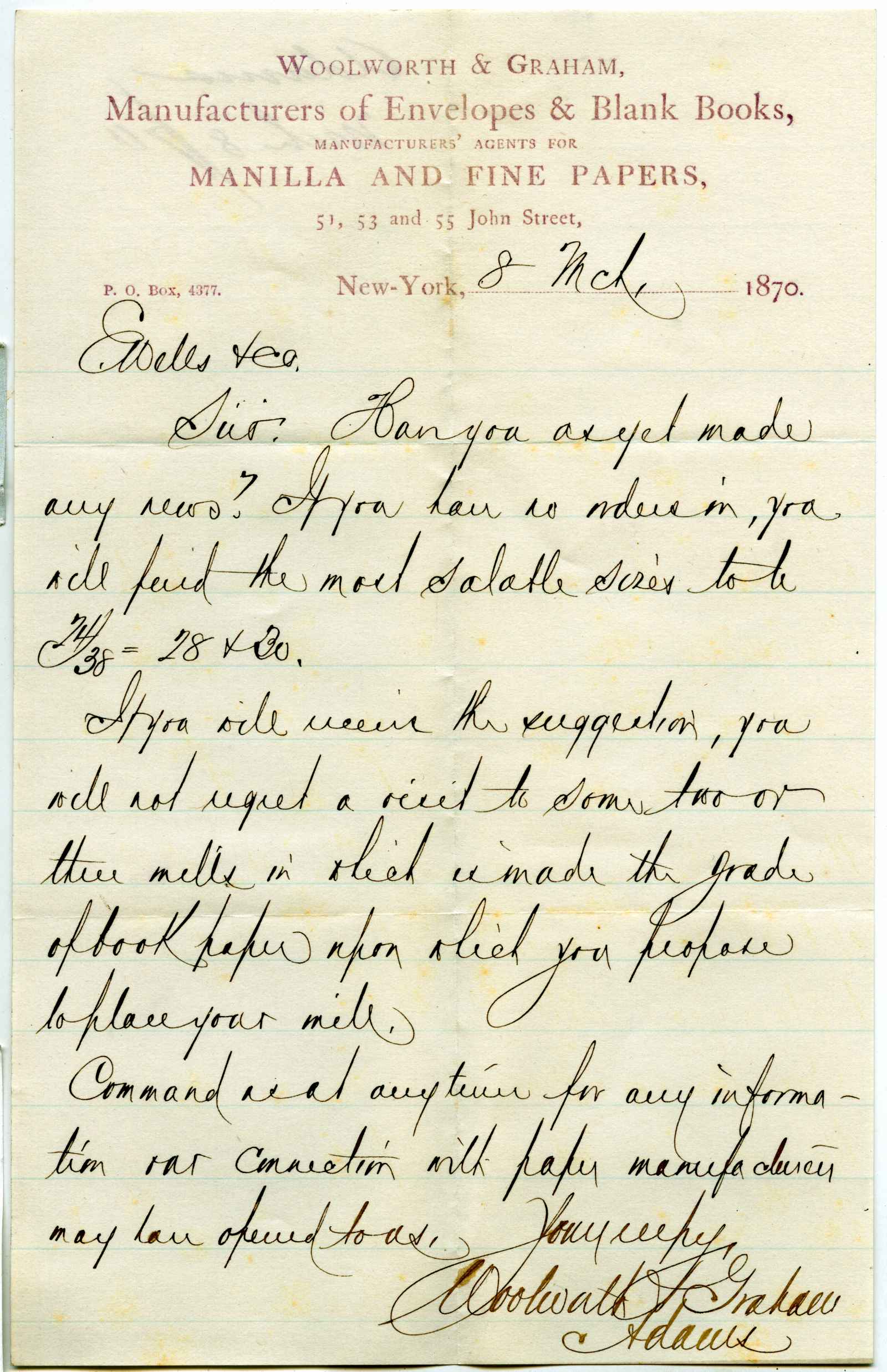 letter; Woolworth & Graham - Manufacturers of Envelopes and Blank Books - N.Y.