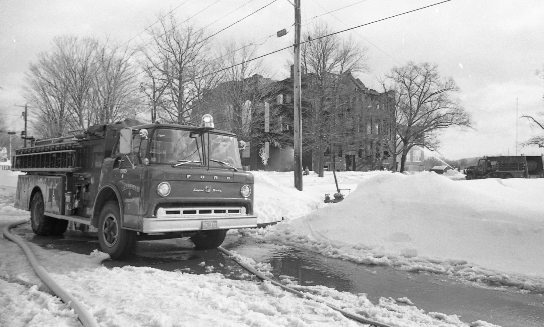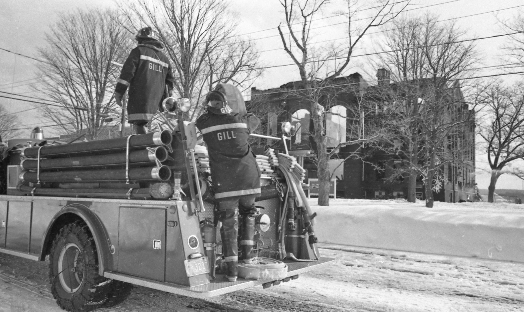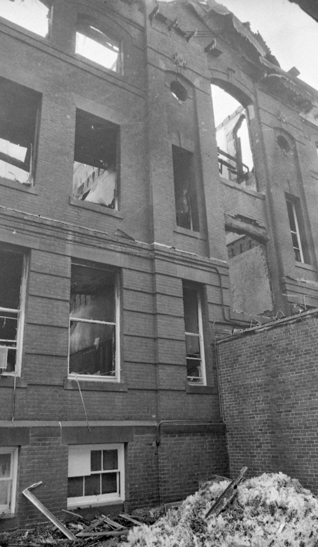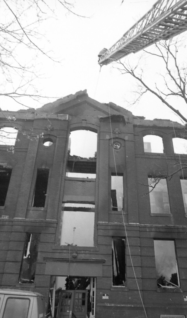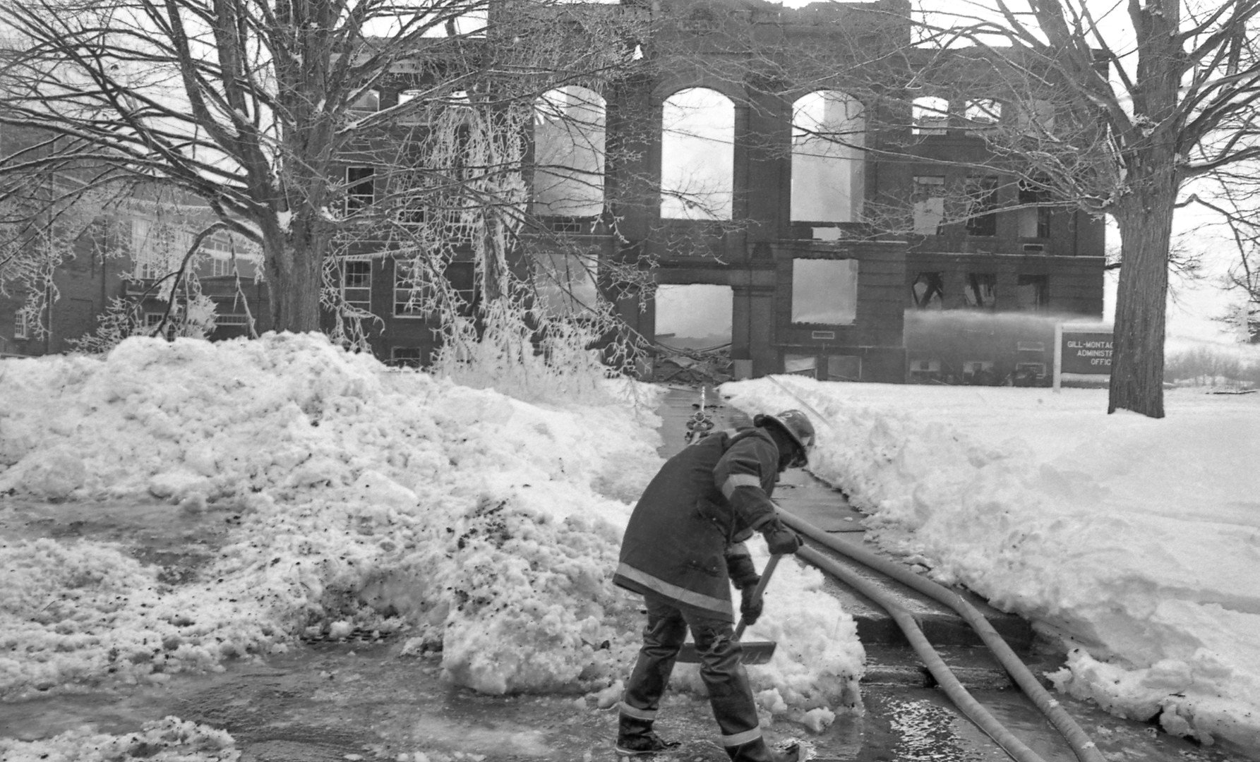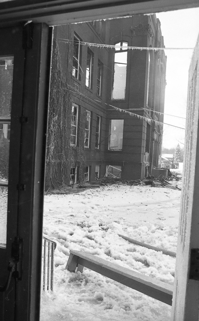 The Sheffield Middle School in Turners Falls, Massachusetts burns on a below-zero January morning in 1987. A gallery of 35 photos will show the clean-up effort. PART 2 of 2.