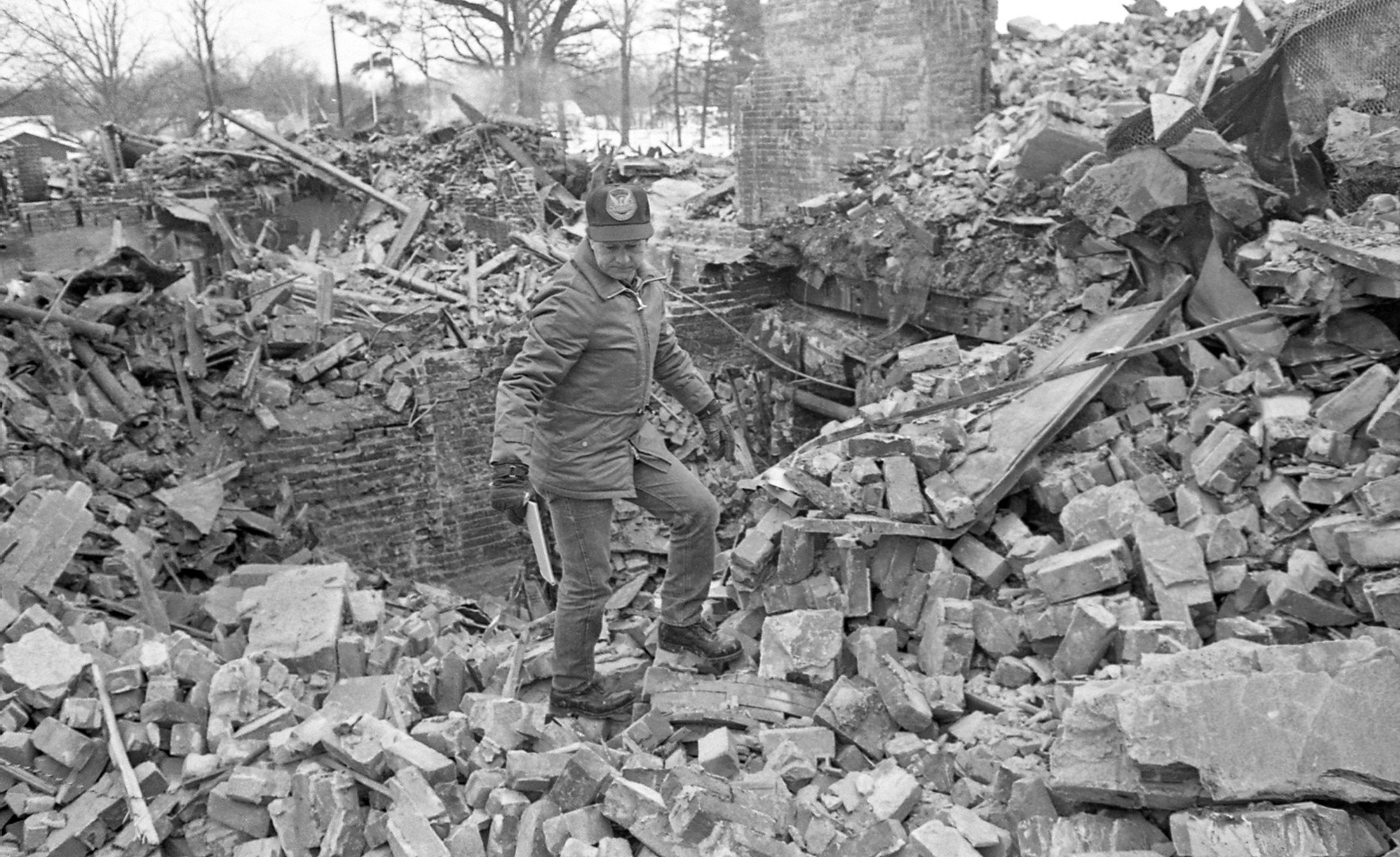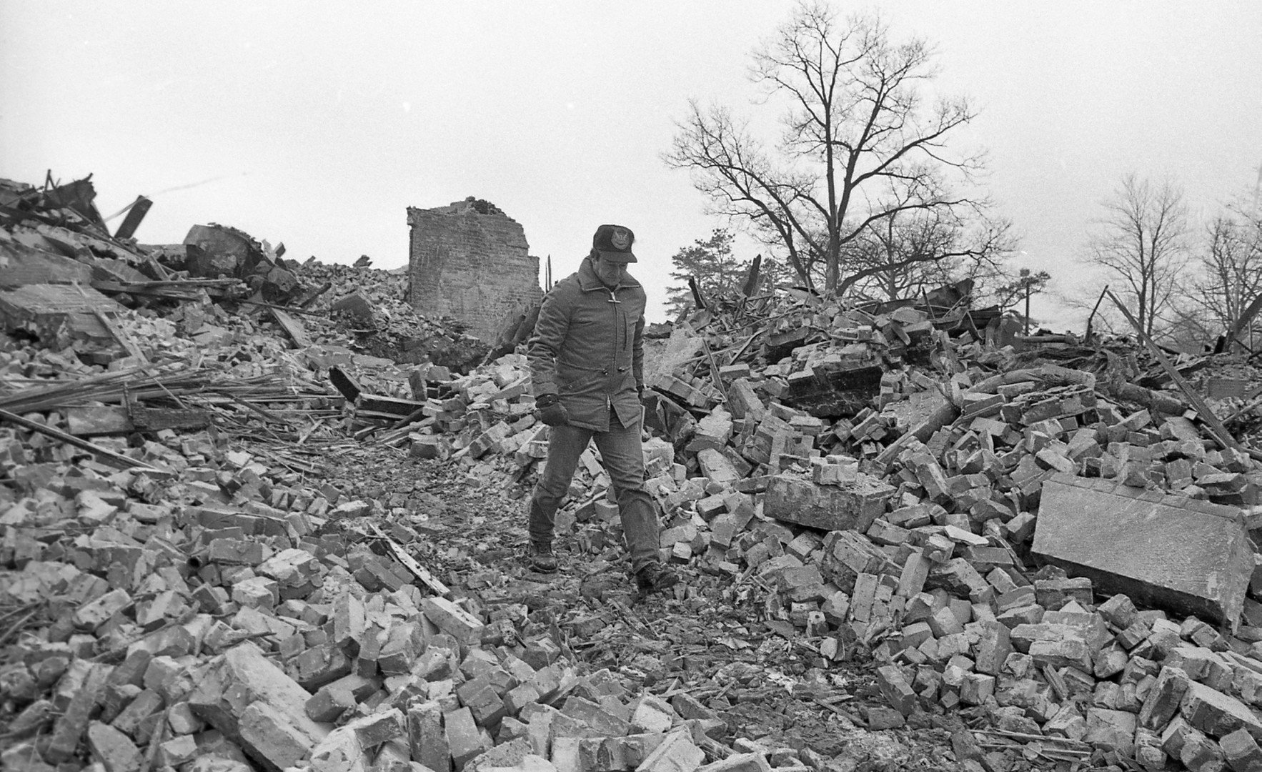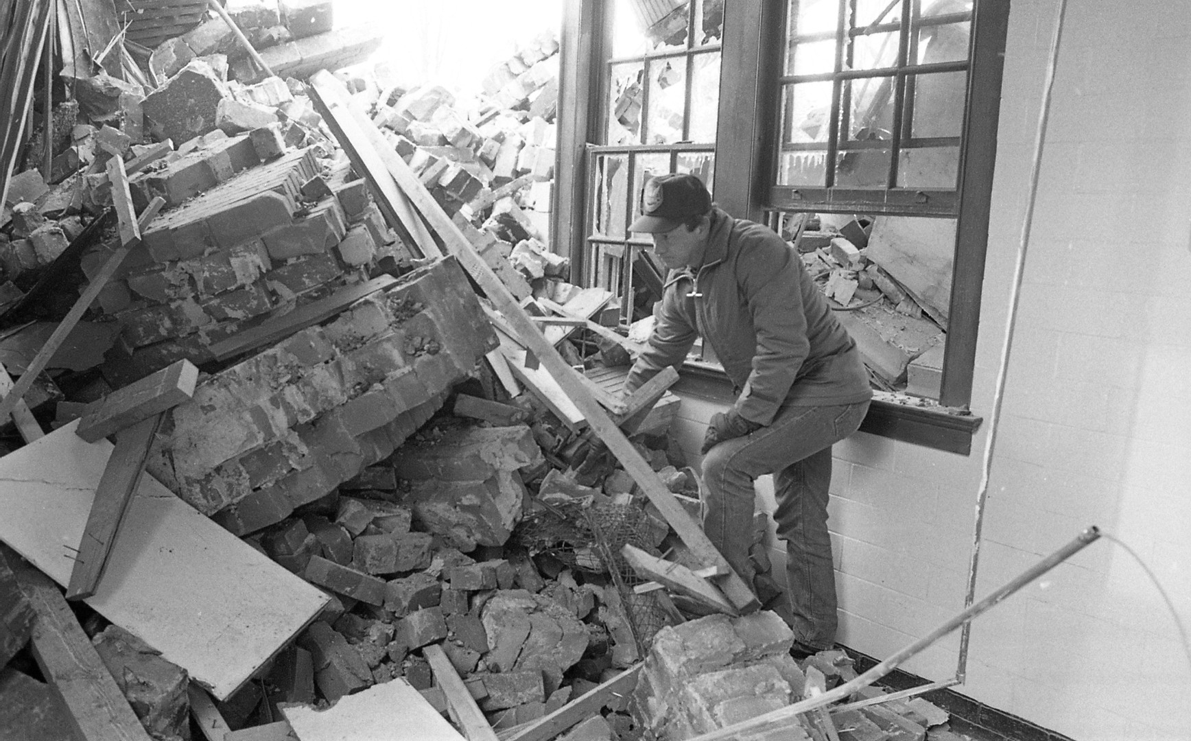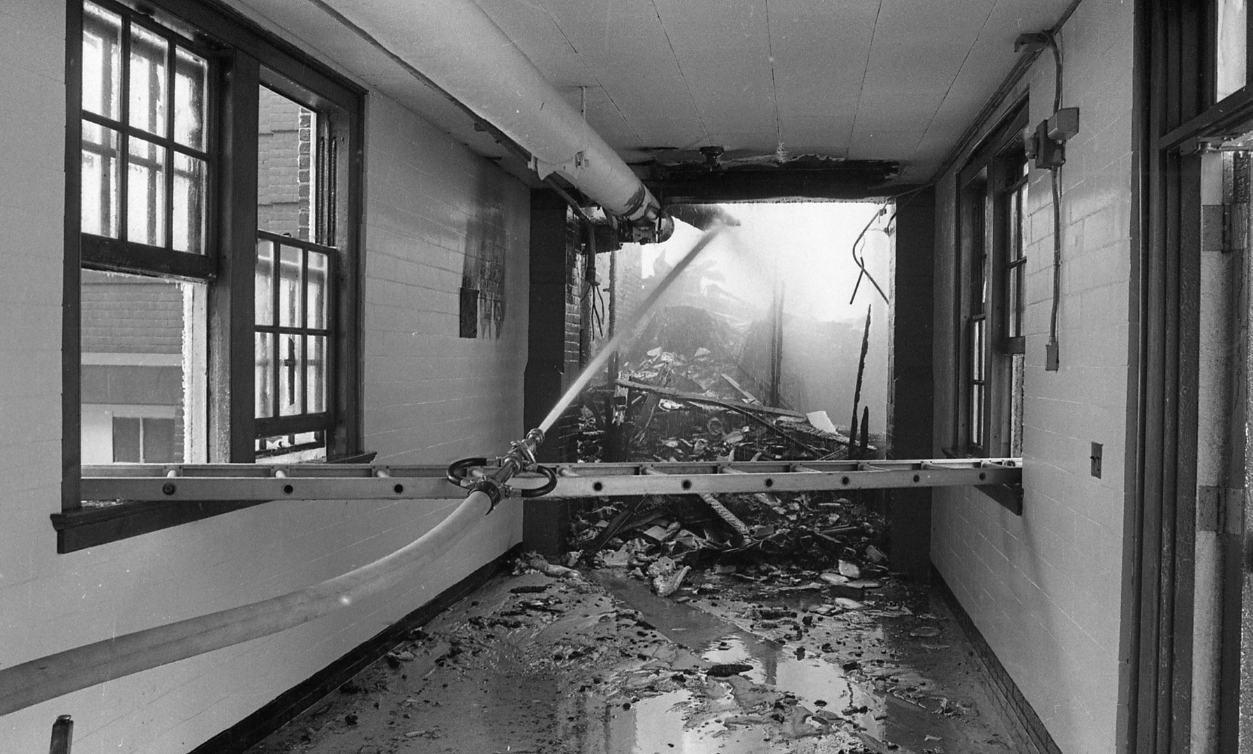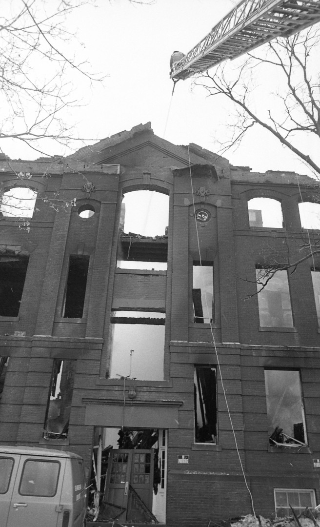 The Sheffield Middle School in Turners Falls, Massachusetts burns on a below-zero January morning in 1987. A gallery of 35 photos will show the clean-up effort. PART 2 of 2.