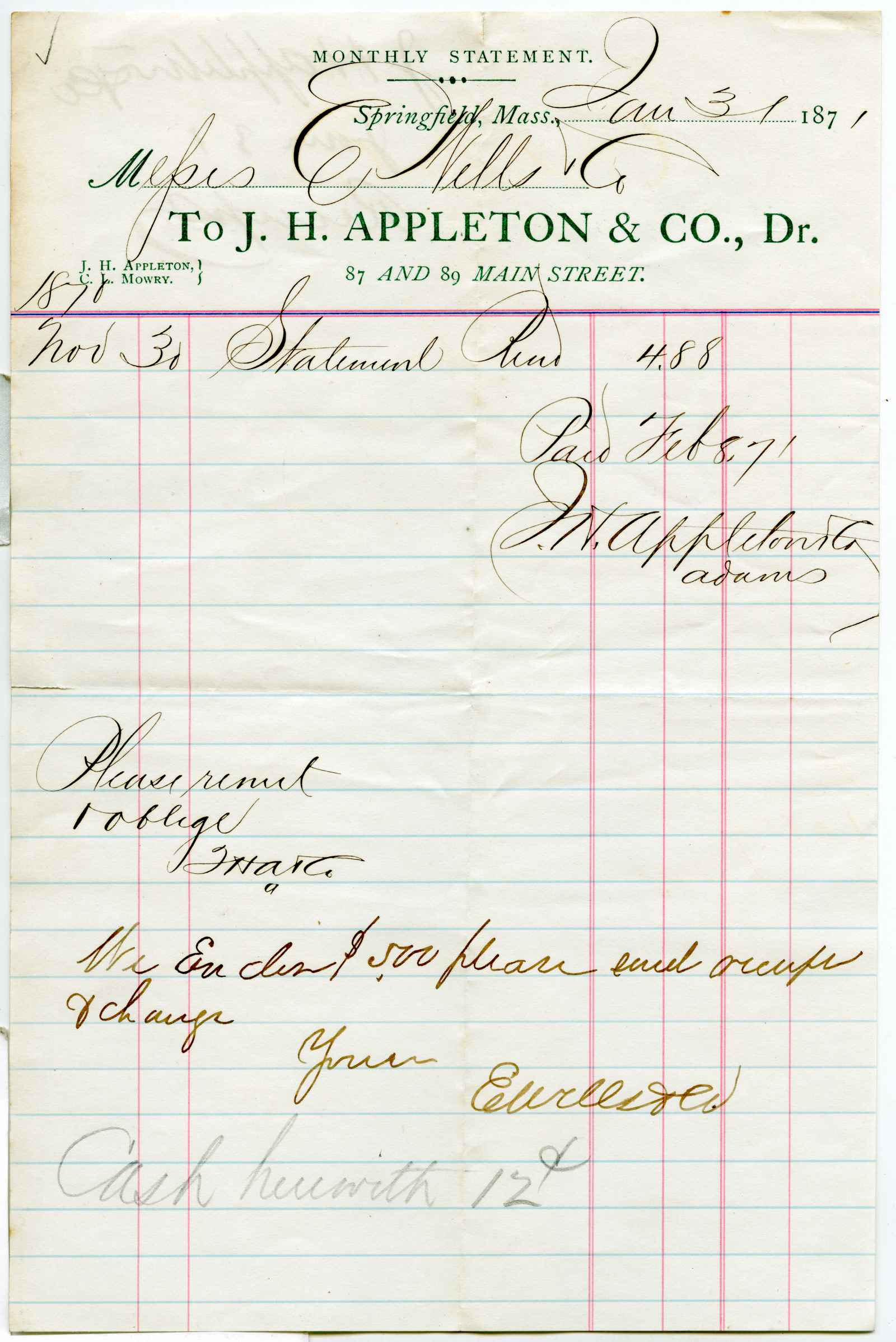 statement; Appleton, J. H. - Statement - Springfield, Ma.