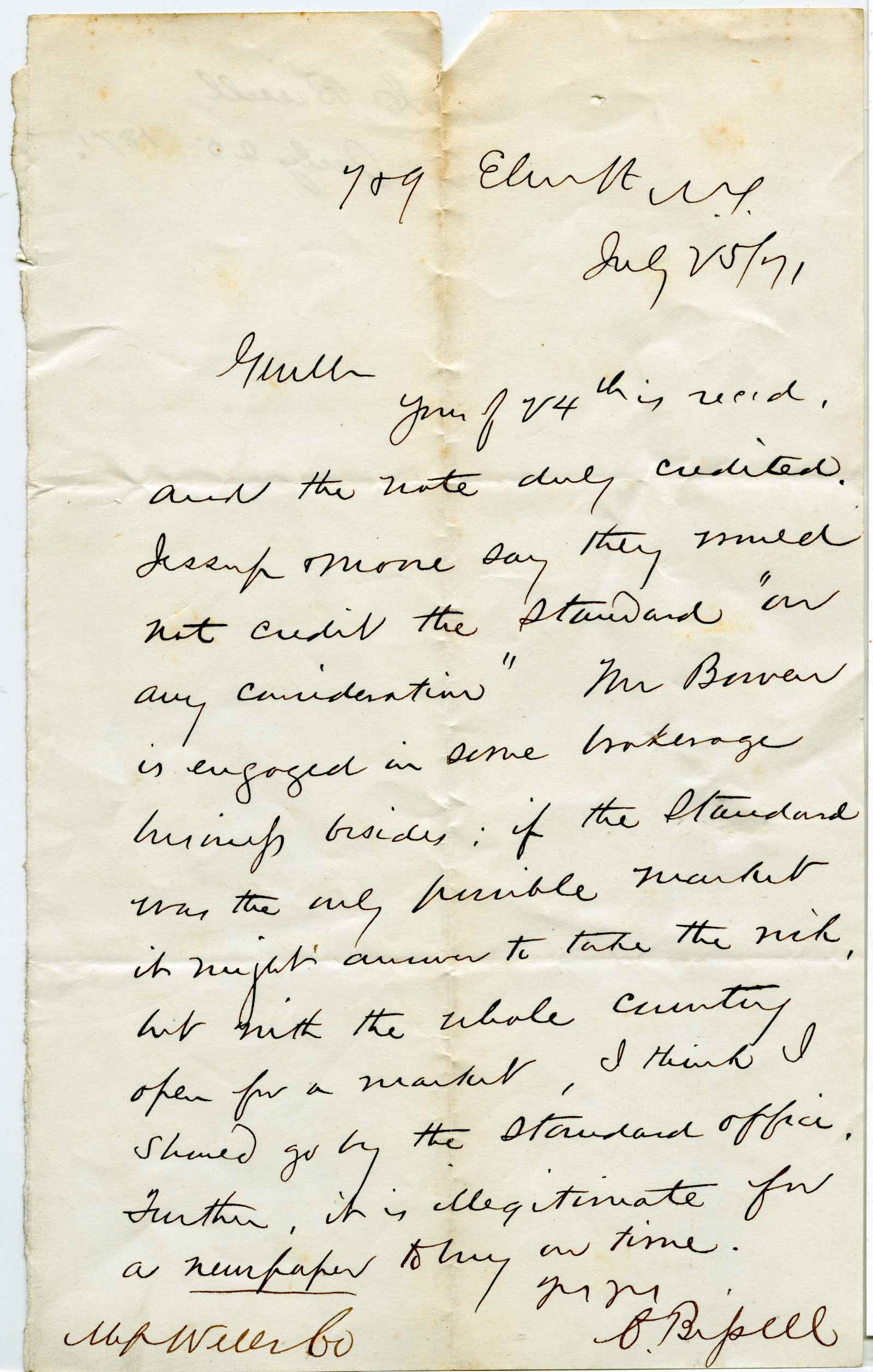 incoming correspondence to the papermaking company of Elisha Wells - circa 1870