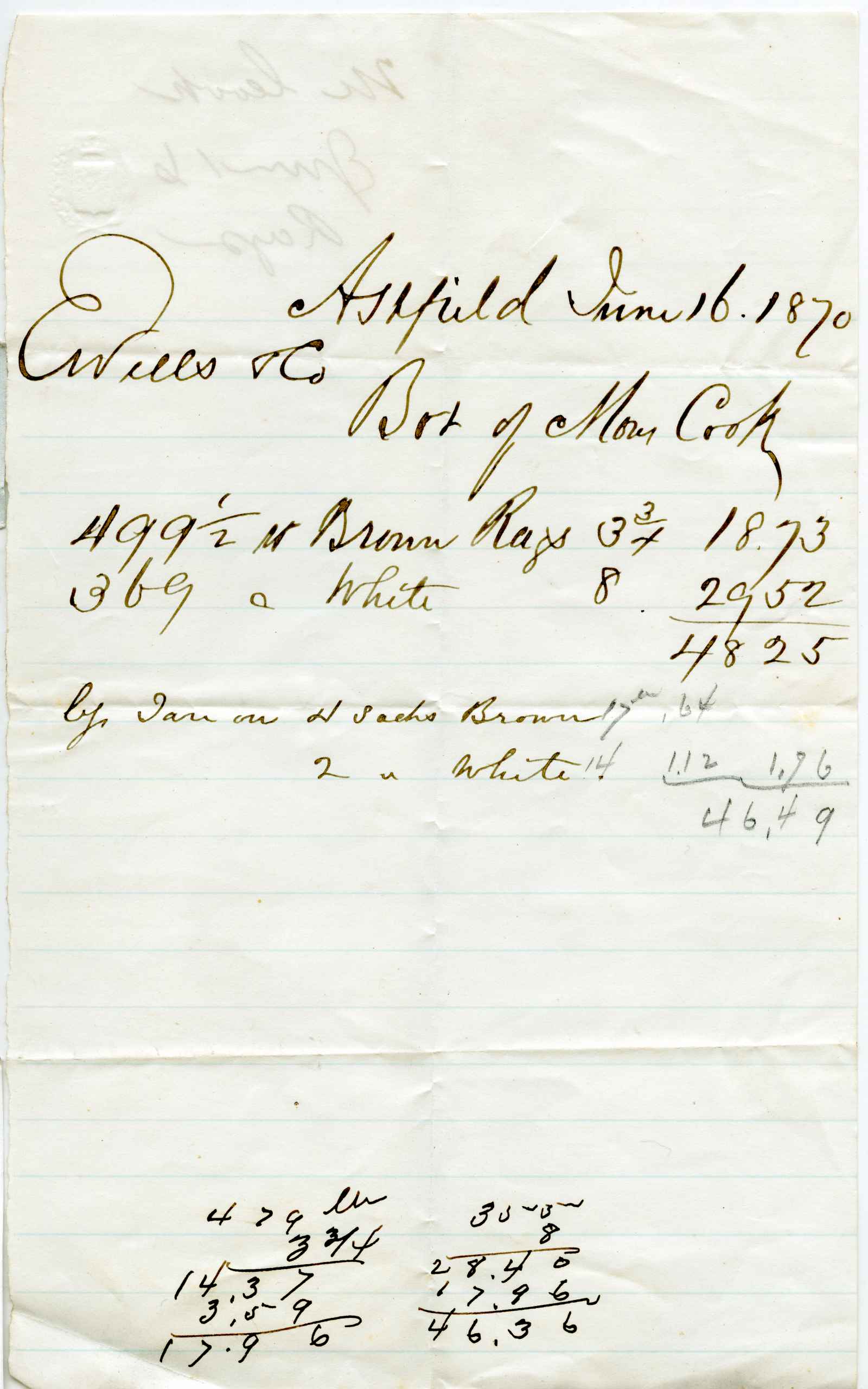 receipt; Cook, Mary - Rags for sale - Ashfield, Ma.