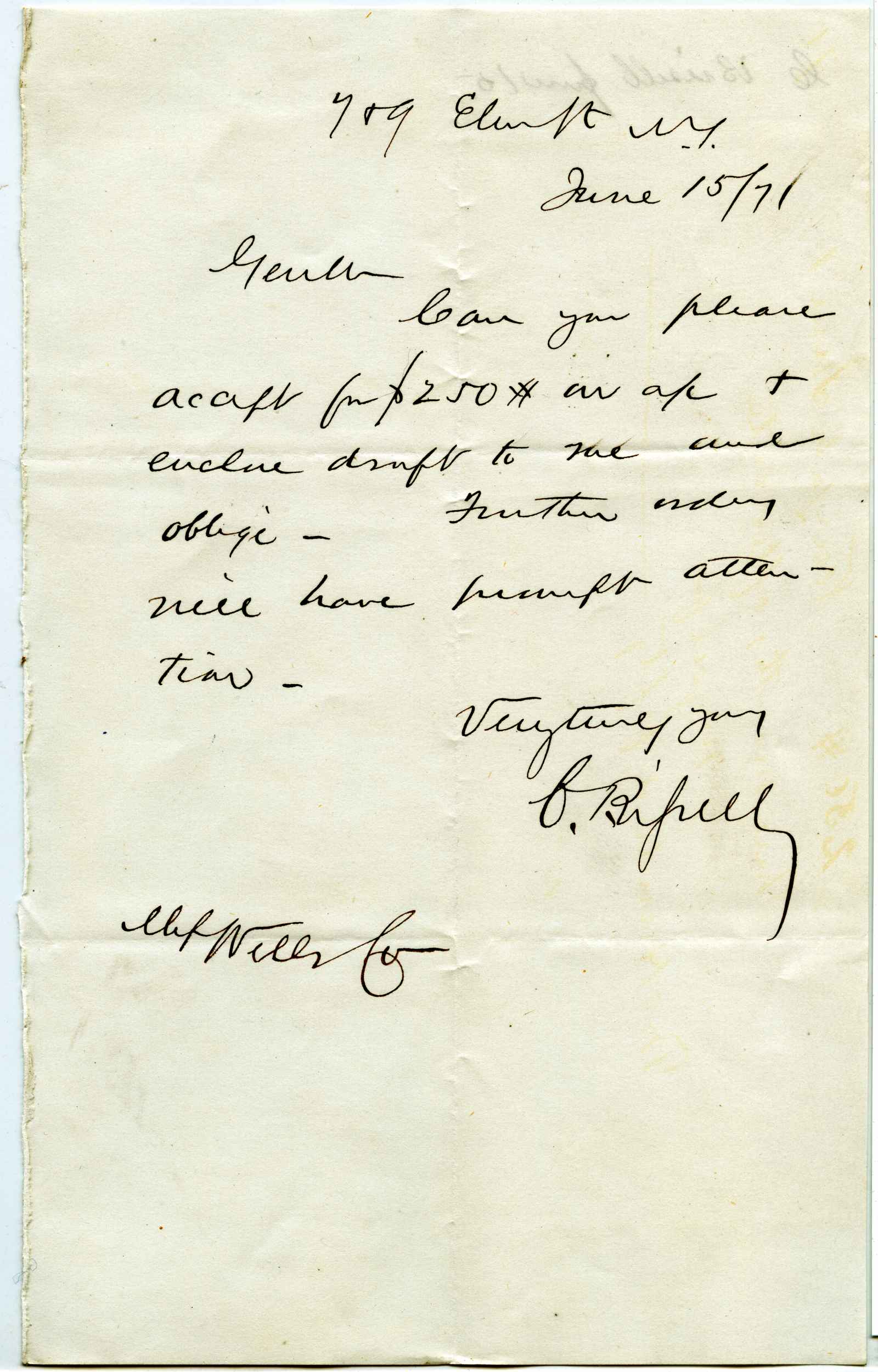 incoming correspondence to the papermaking company of Elisha Wells - circa 1870