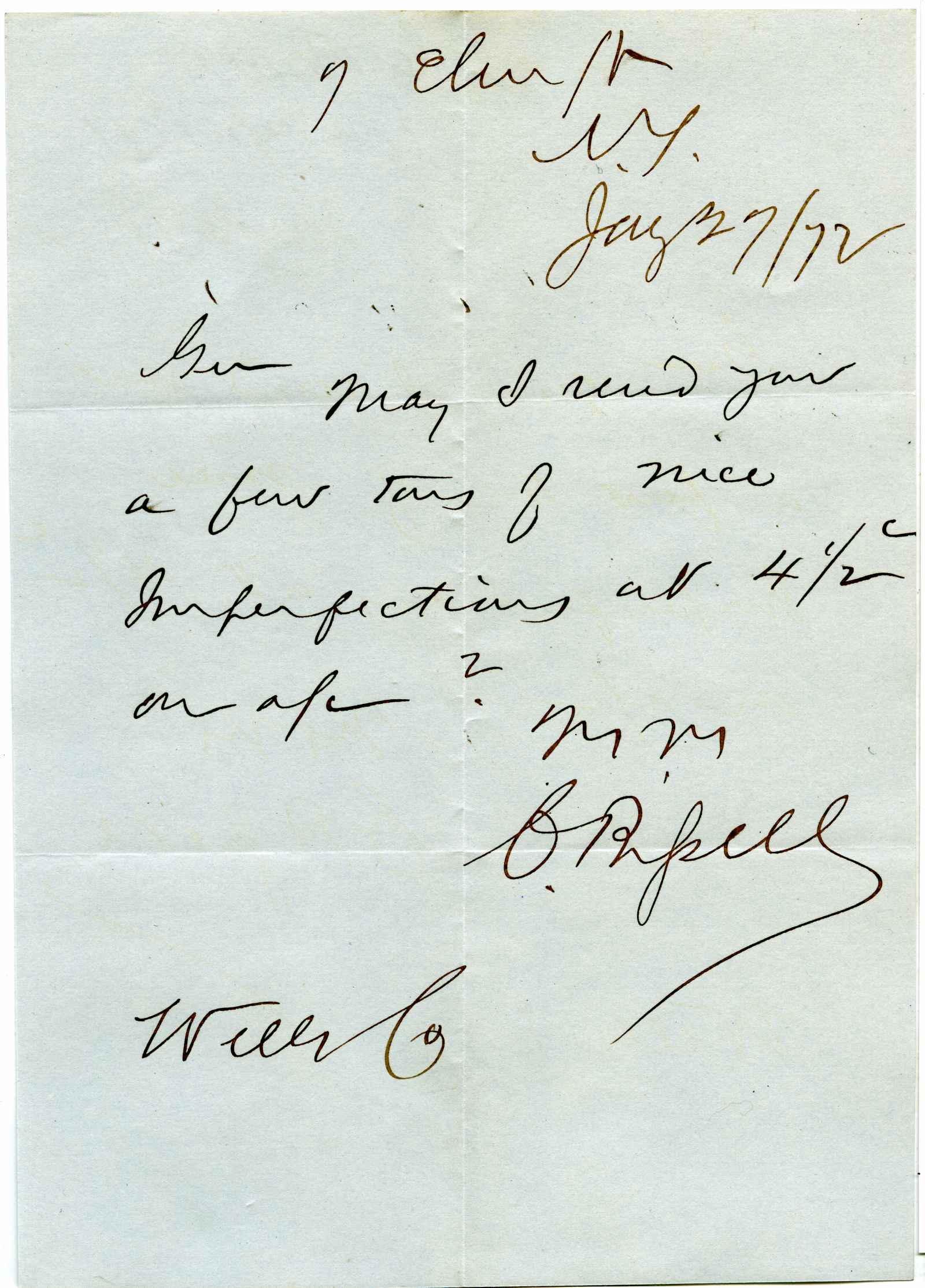 incoming correspondence to the papermaking company of Elisha Wells - circa 1870