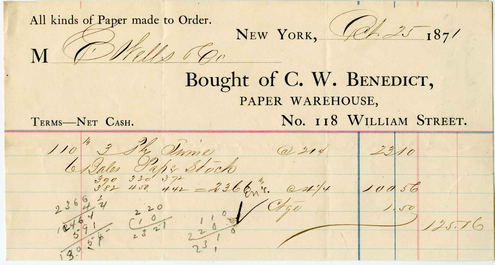 incoming correspondence to the papermaking company of Elisha Wells - circa 1870