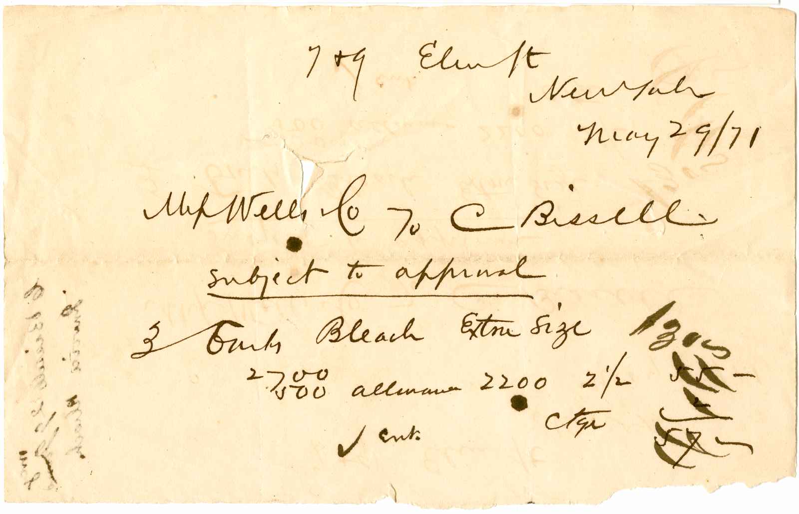 incoming correspondence to the papermaking company of Elisha Wells - circa 1870