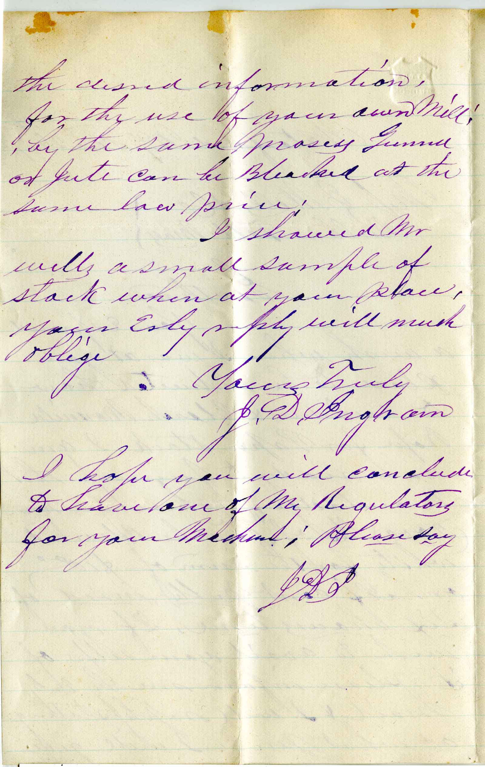 letter; J. D. Ingram - Waterford NY