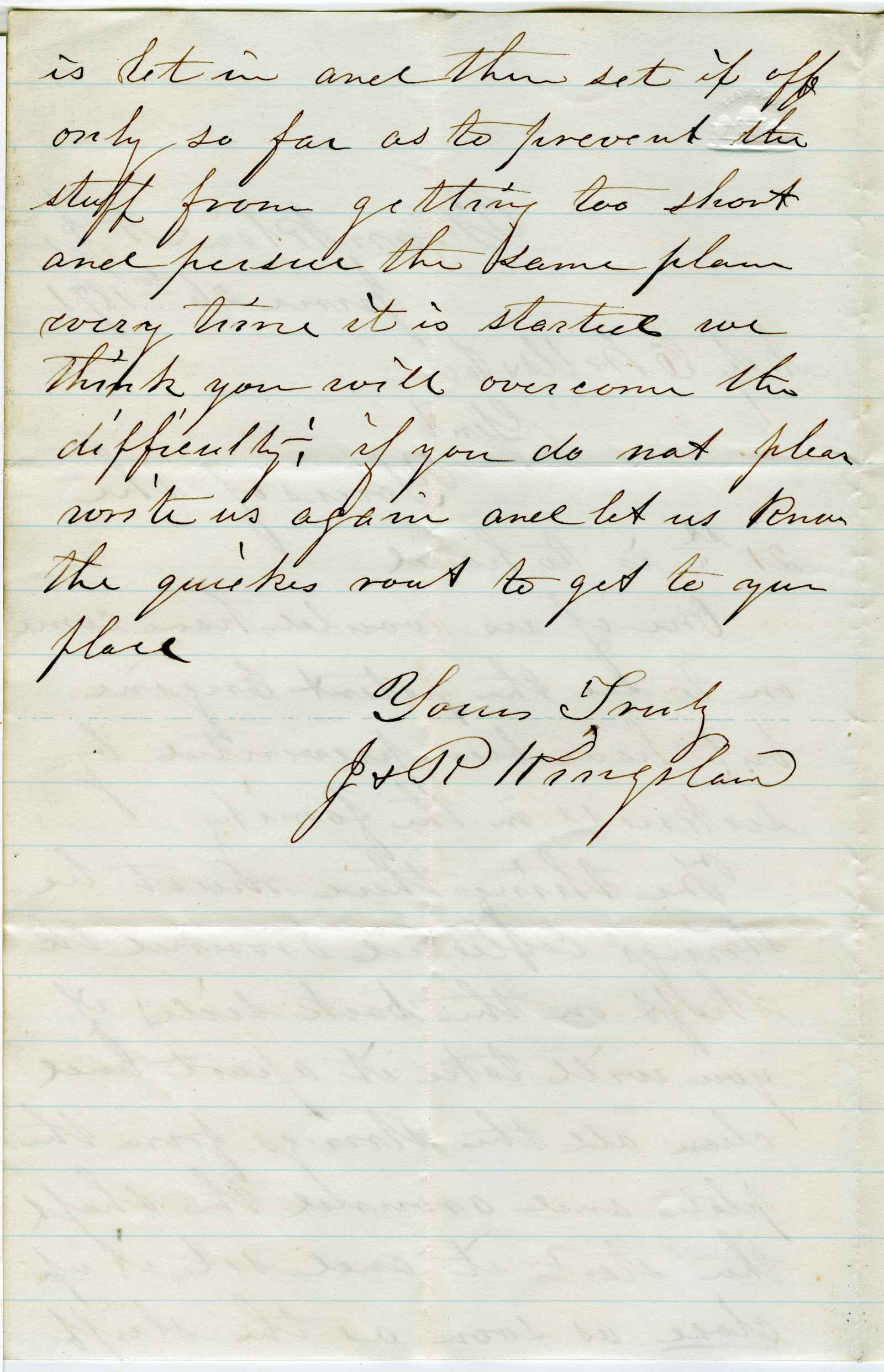 letter; Kingsland, J. & R - Looking at Patent Engine - Franklin, N. J. -