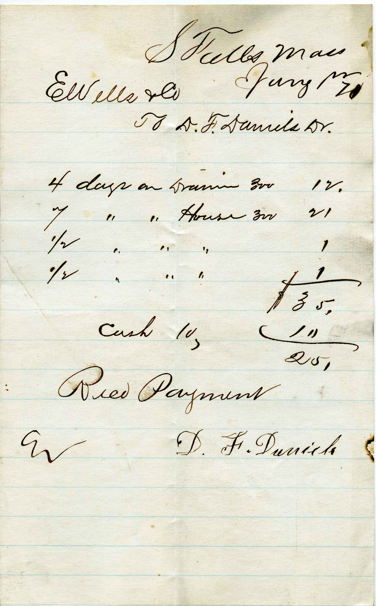 | dc.description | receipt; Daniels, A. F. - Miscellaneous services rendered - Shelburne Falls, Ma. | |
