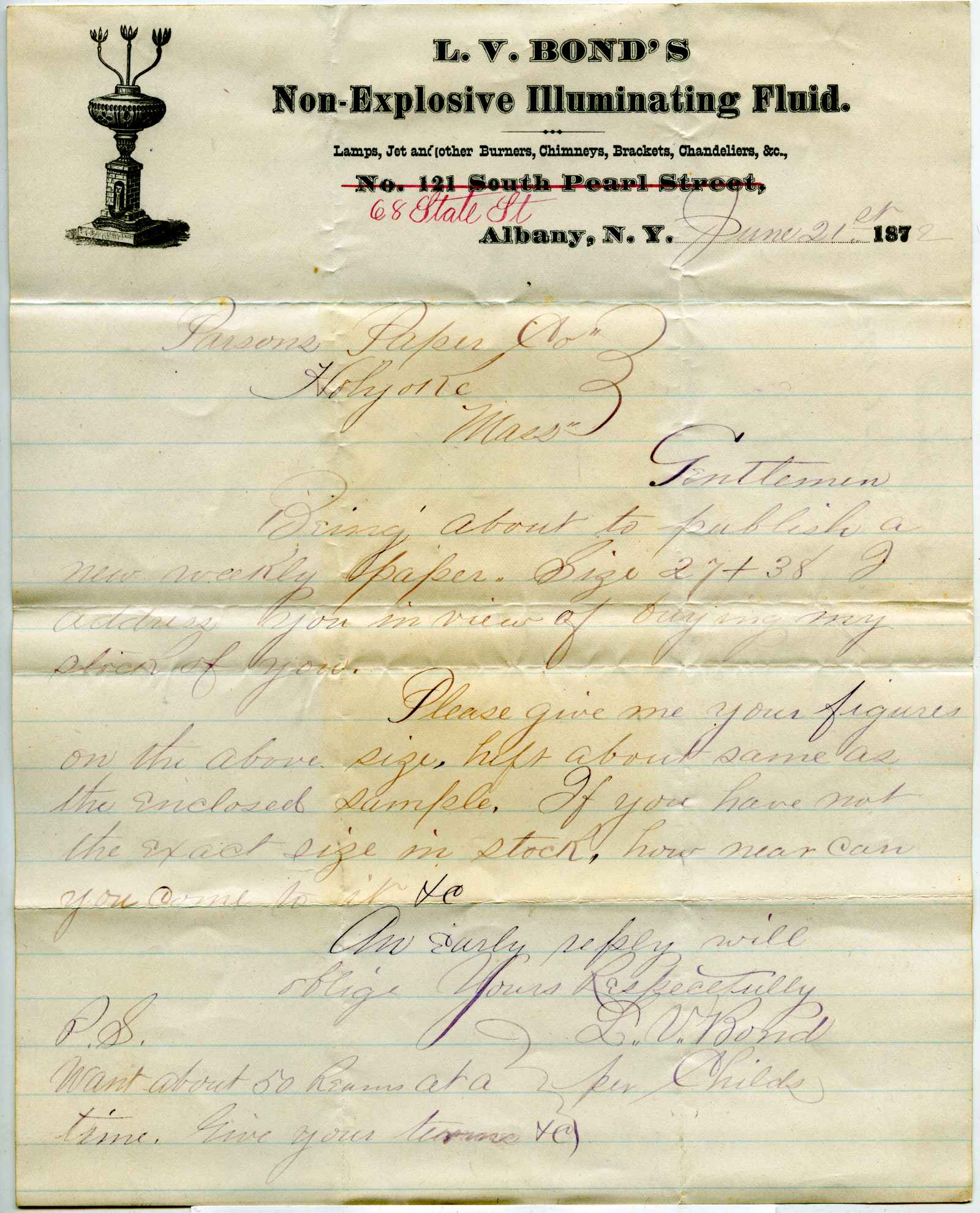 letter; Bond, L. V. - 68 State St. - Albany, N.Y.