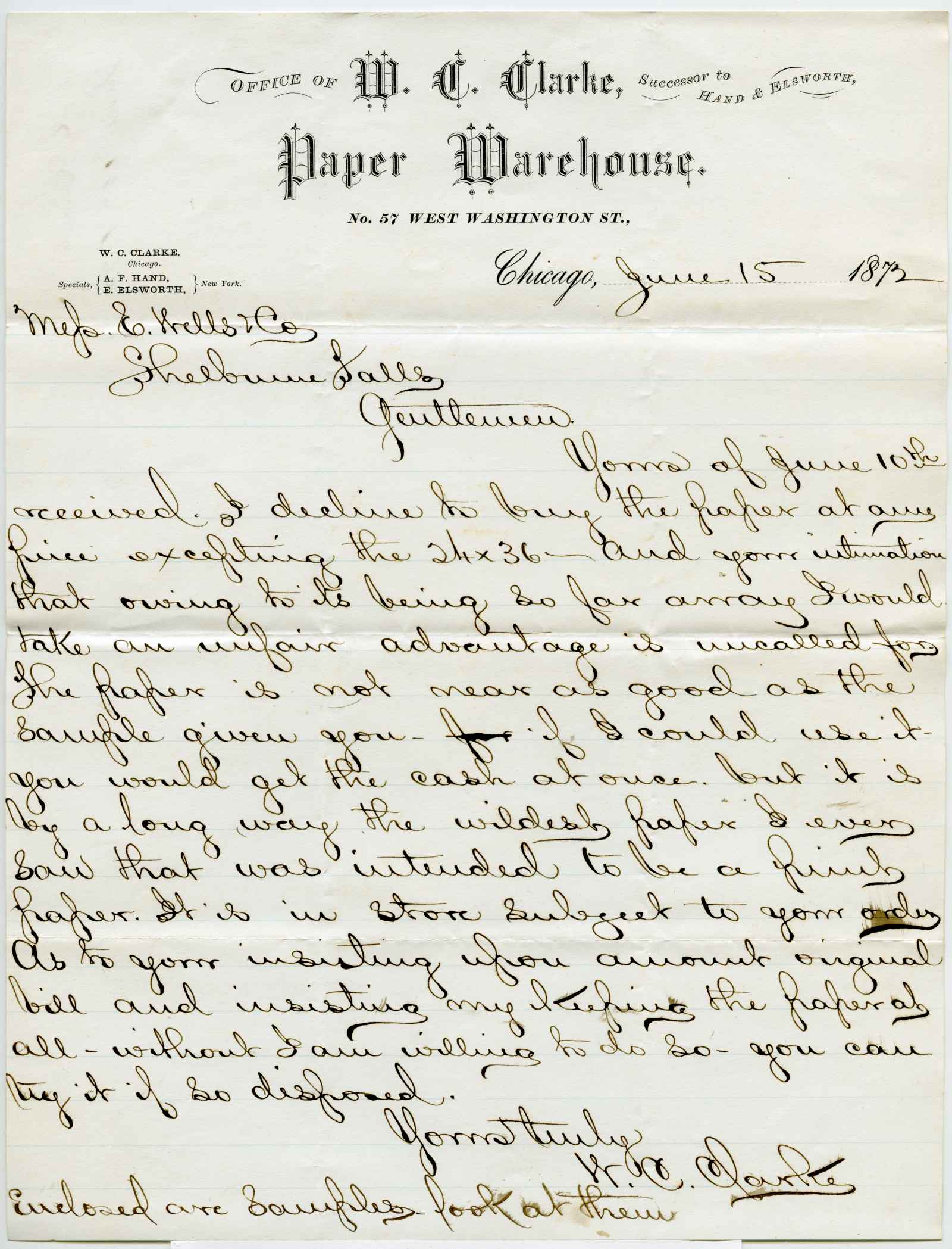letter; Clarke, W. C. - Paper Warehouse - Chicago